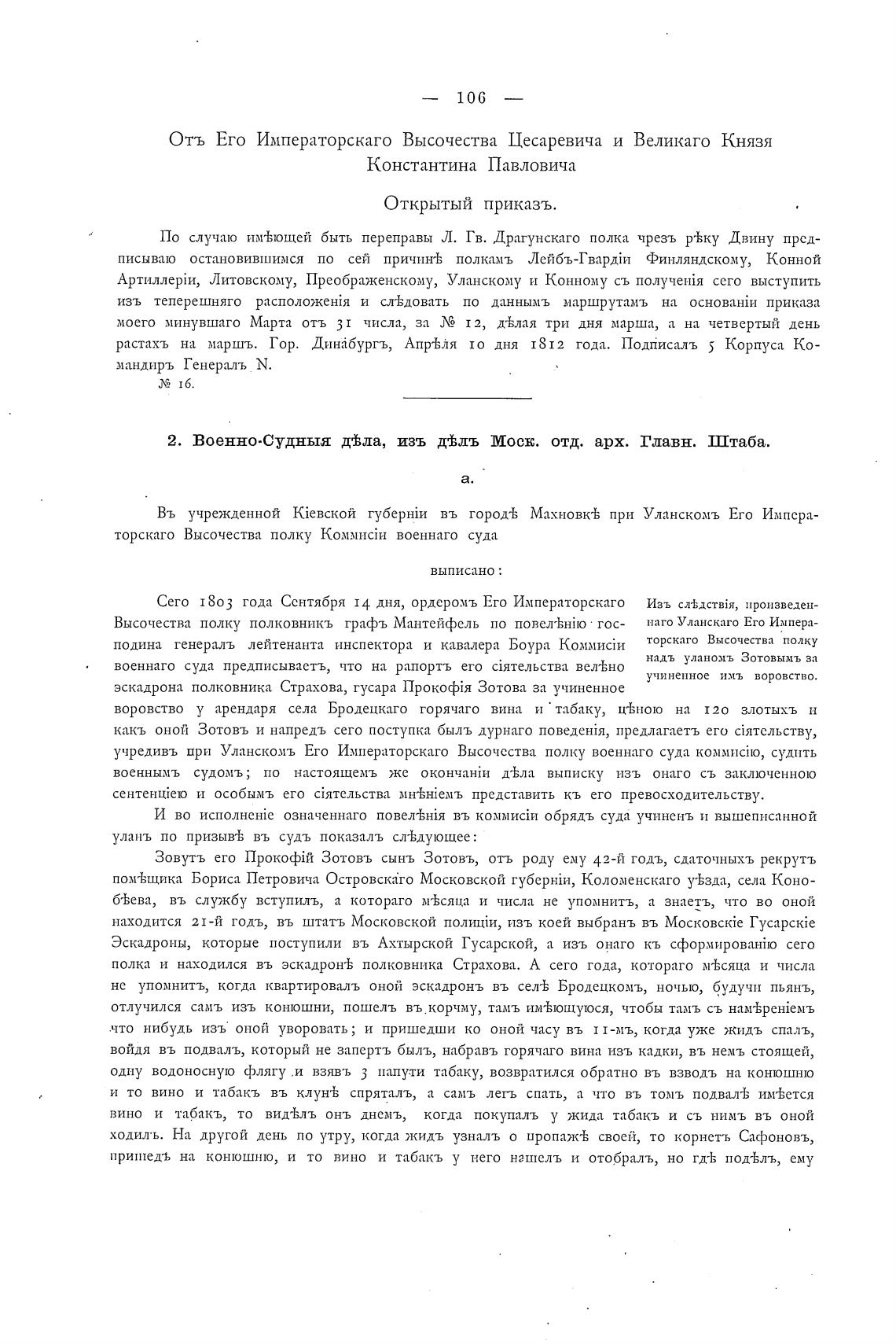 учредивъ при Уланскомъ Его Императорскаго Высочества полку военнаго суда судить