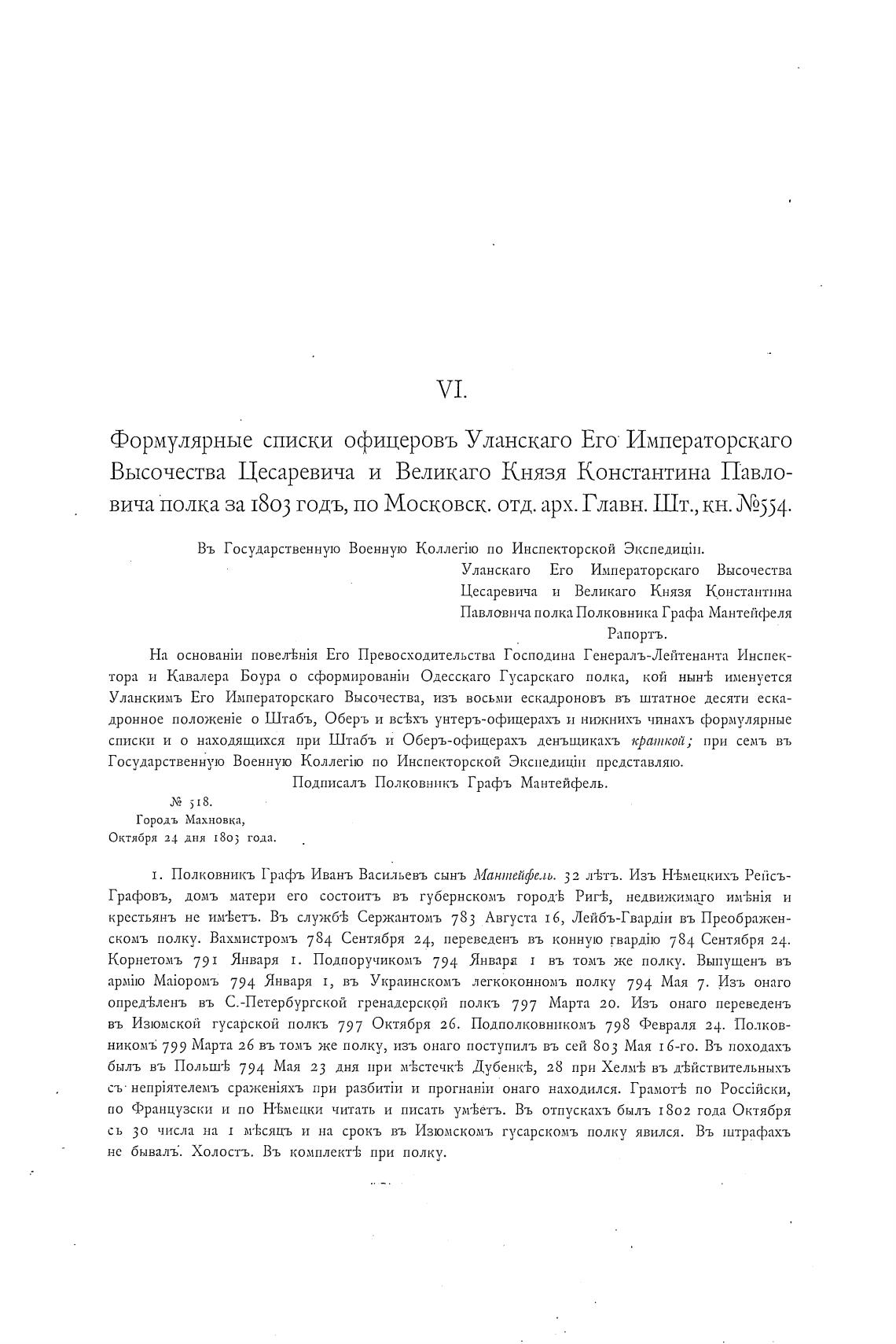 вича полка за 1803 годъ, по Московск. отд. арх. Главн. Шт., кн. N2554.
