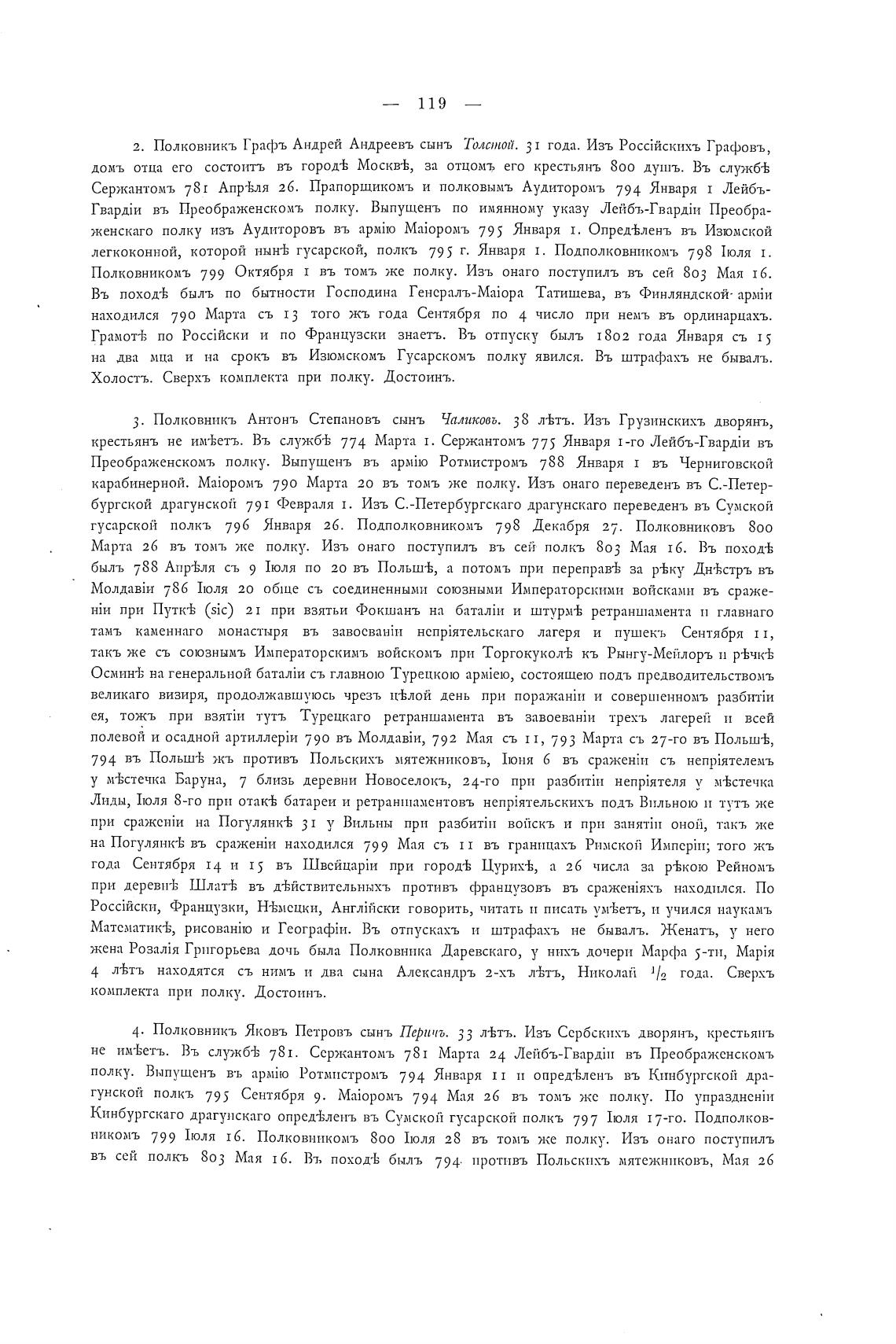 гусарской полкъ 796 Января 26. Подполковникомъ 798 Декабря 27.