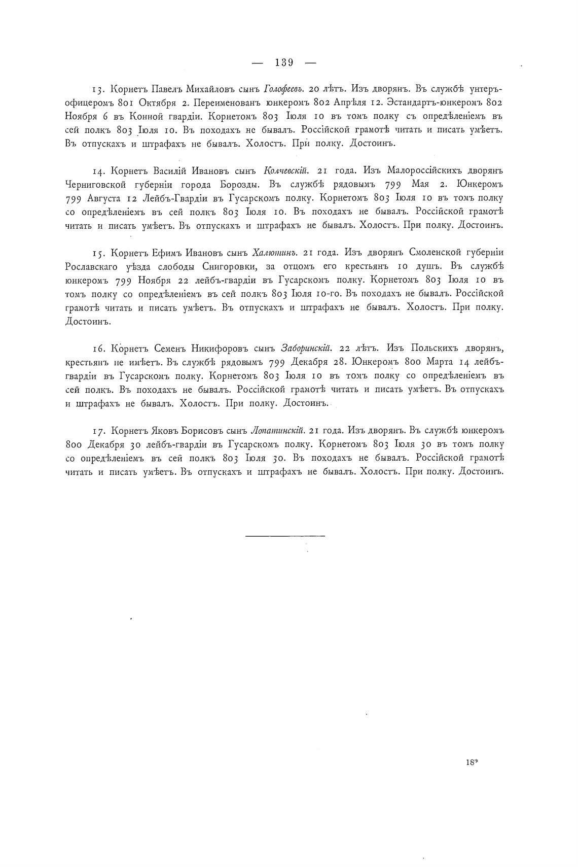 13. Корнетъ Павель Михайловъ сынъ Голофеевг,. 20 л±тъ. Изъ дворянъ. Въ служб± унтеръ-