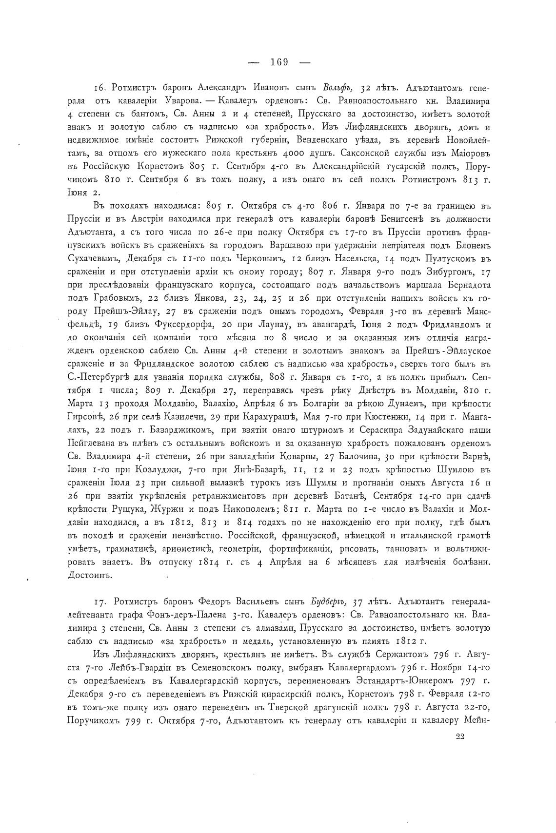 16. Ротмистръ баронљ Александръ Ивановъ сынъ Вольф, 32 л±т-ь. Адъютантомъ гене-
