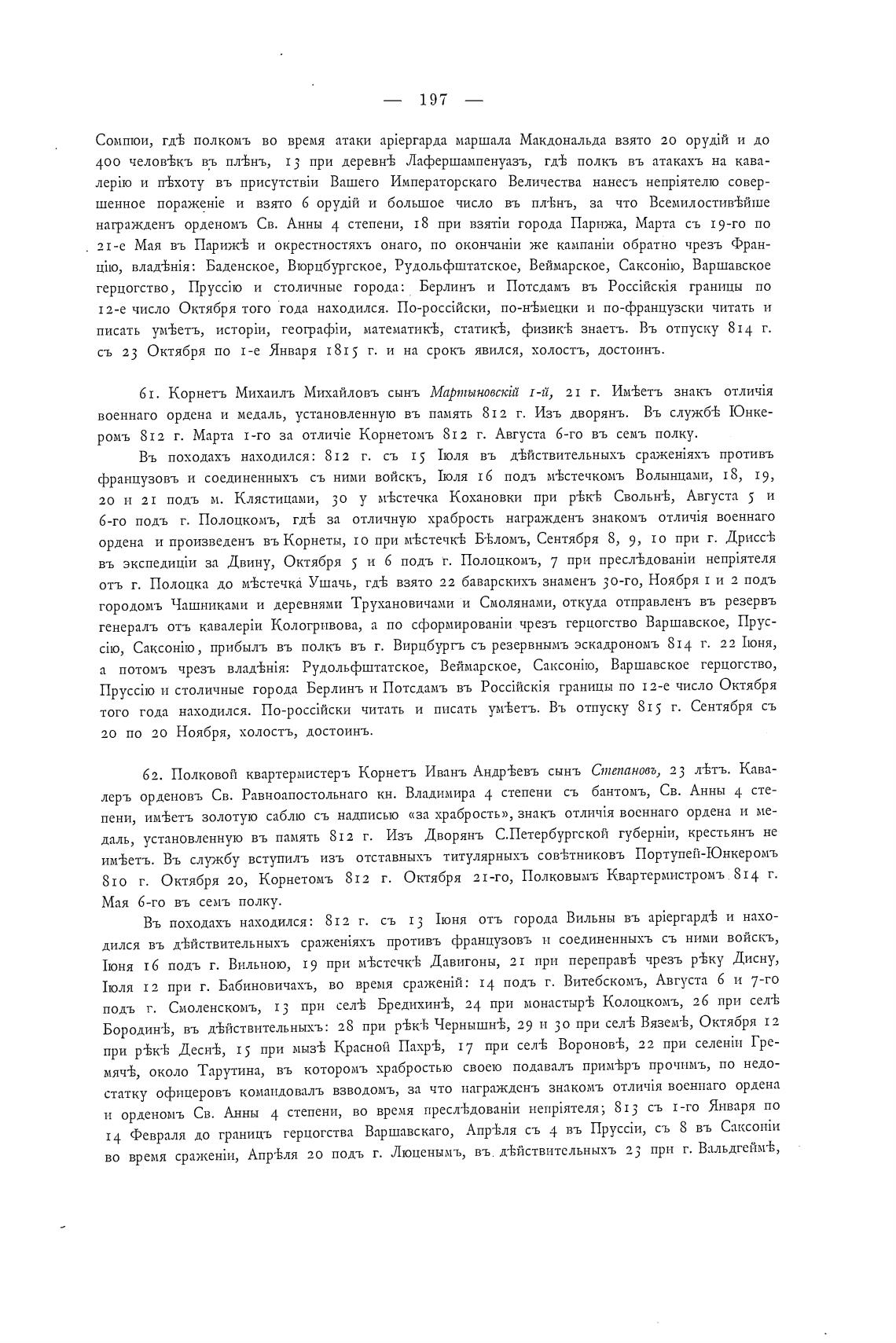 роль 812 г. Марта 1-го за отлич(е Корнетомъ 812 г. Августа 6-го въ семь полку.