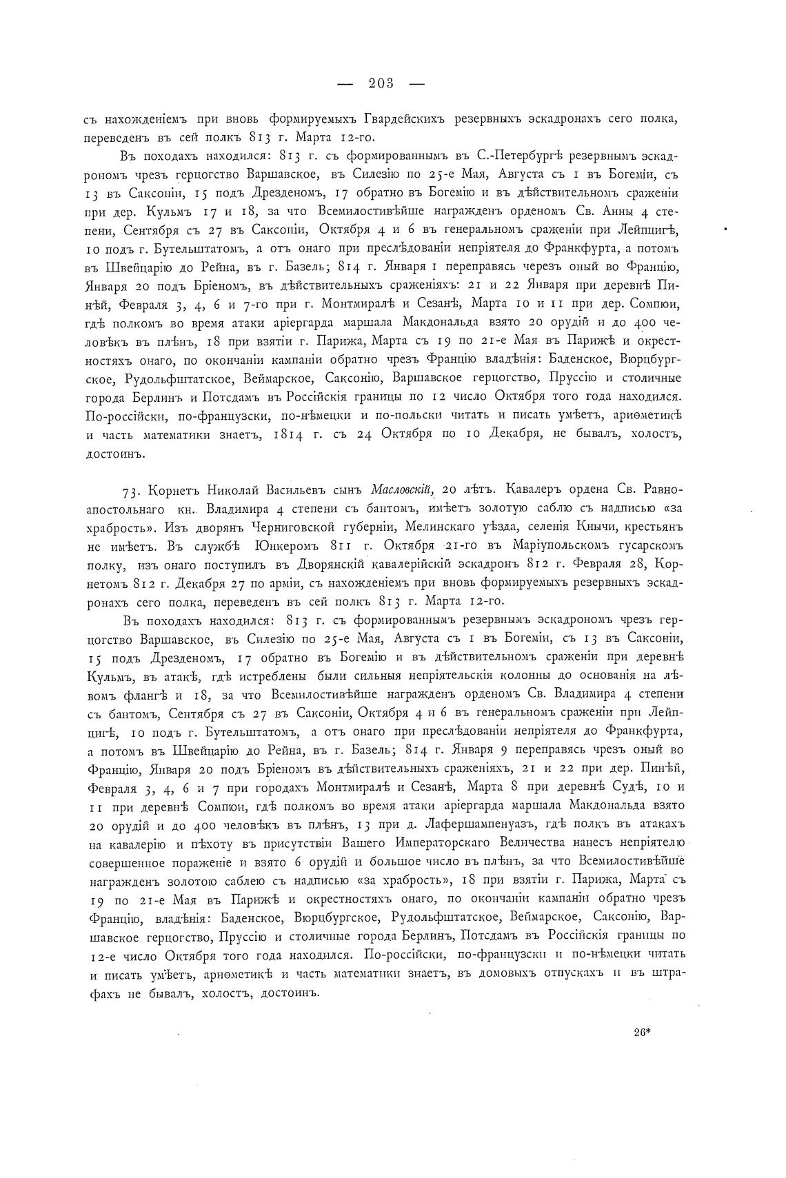 73. Корнетљ Николай Васильевъ сынъ Масловскт, 20 л±т-ь. Кавалеръ ордена Св. Равно-