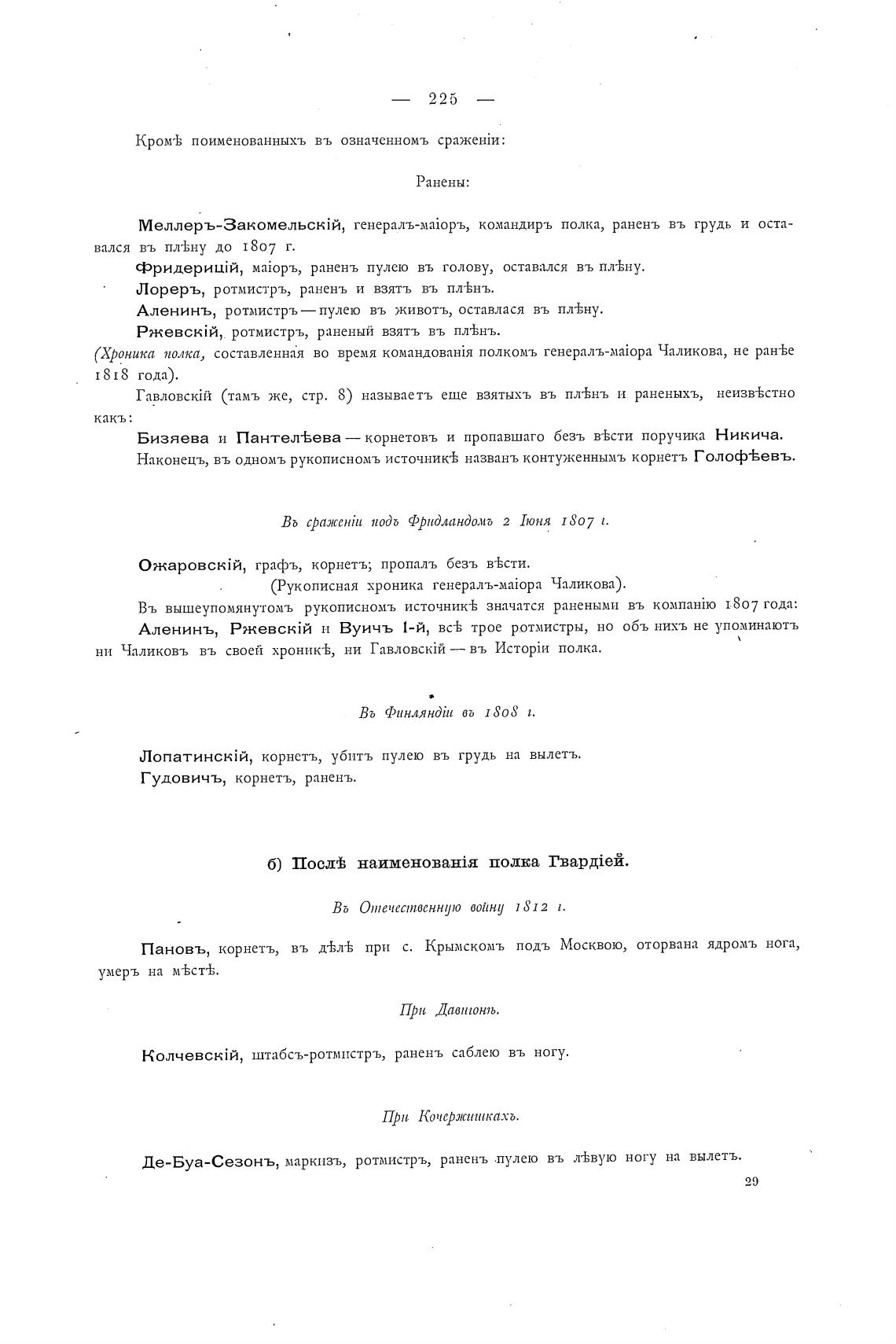 Въ вышеупомянутомъ рукописномъ источник-Ь значатся ранеными въ 1807 года: