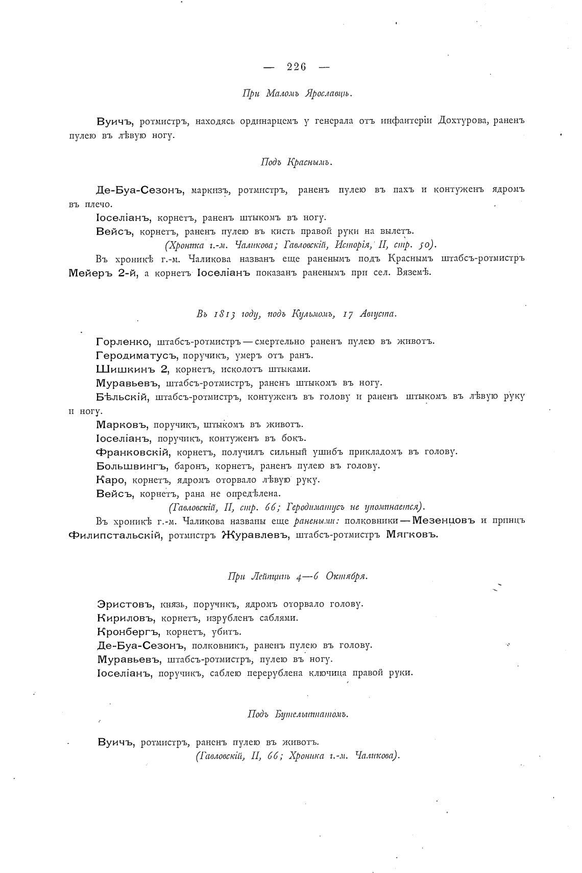 Въ хроникЬ г.-м. Чаликова названь еще раненымъ подъ Краснымъ штабсъ-ротмистръ