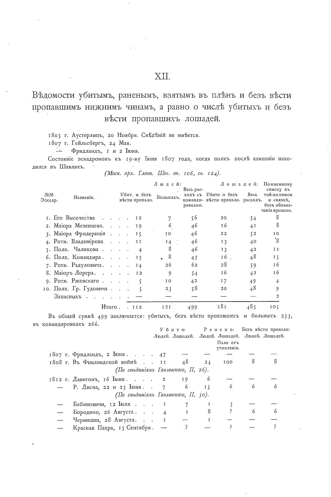 эскадроновъ кь 19-му IoH51 1807 года, когда полк-ь посл•ь нахо-