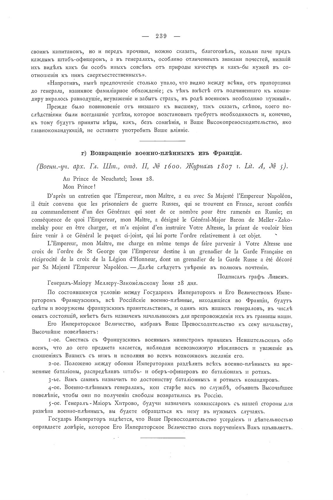 -ое. Снестись съ Французскимъ военнымъ министромъ приццемъ Невшательскпмъ обо