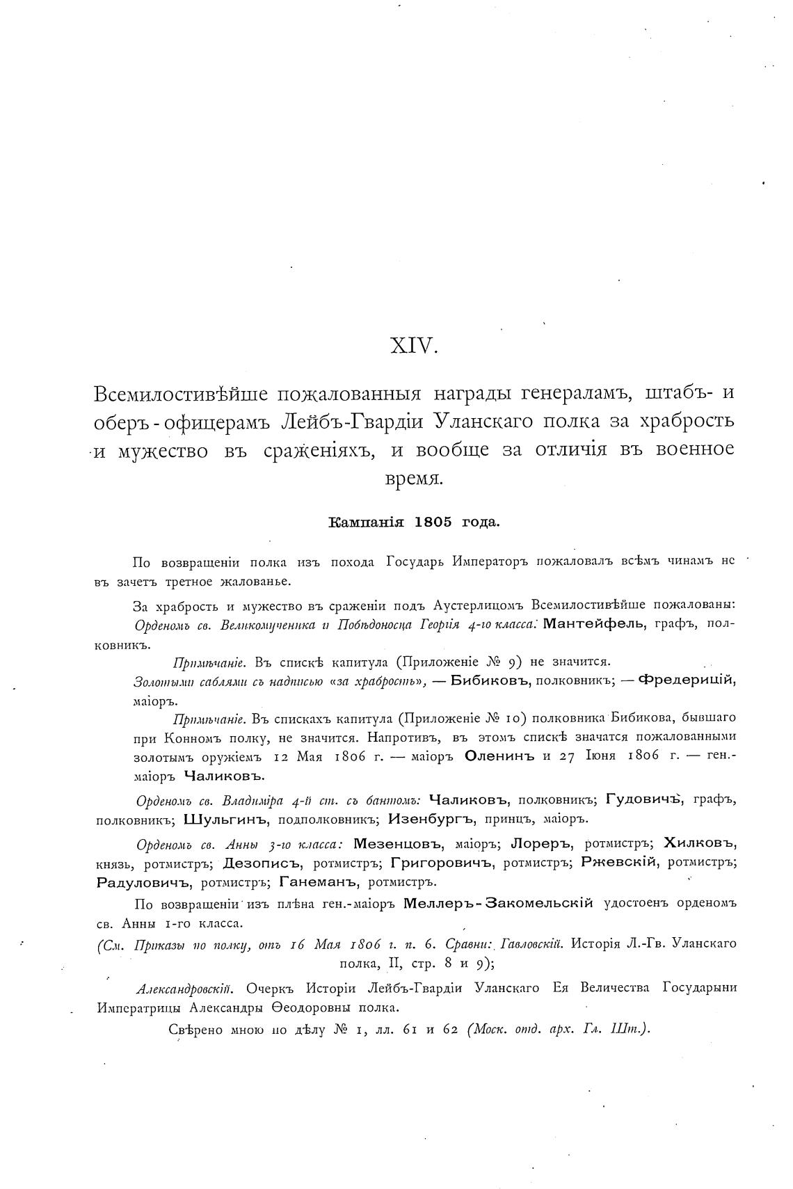(См. Приказы но полку, тб Мая 1806 г. п. б. Сравни: Тавловскт. Л.-Гв. Уланскаго