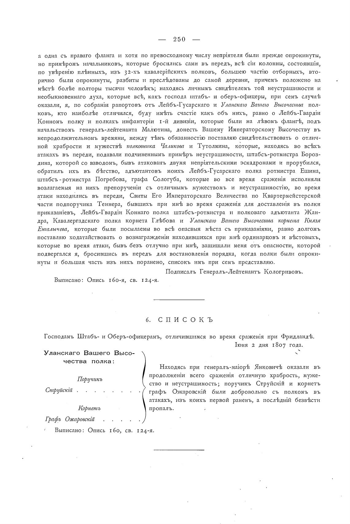 Подписалъ Генералъ-Лейтенантъ Кологривовъ.