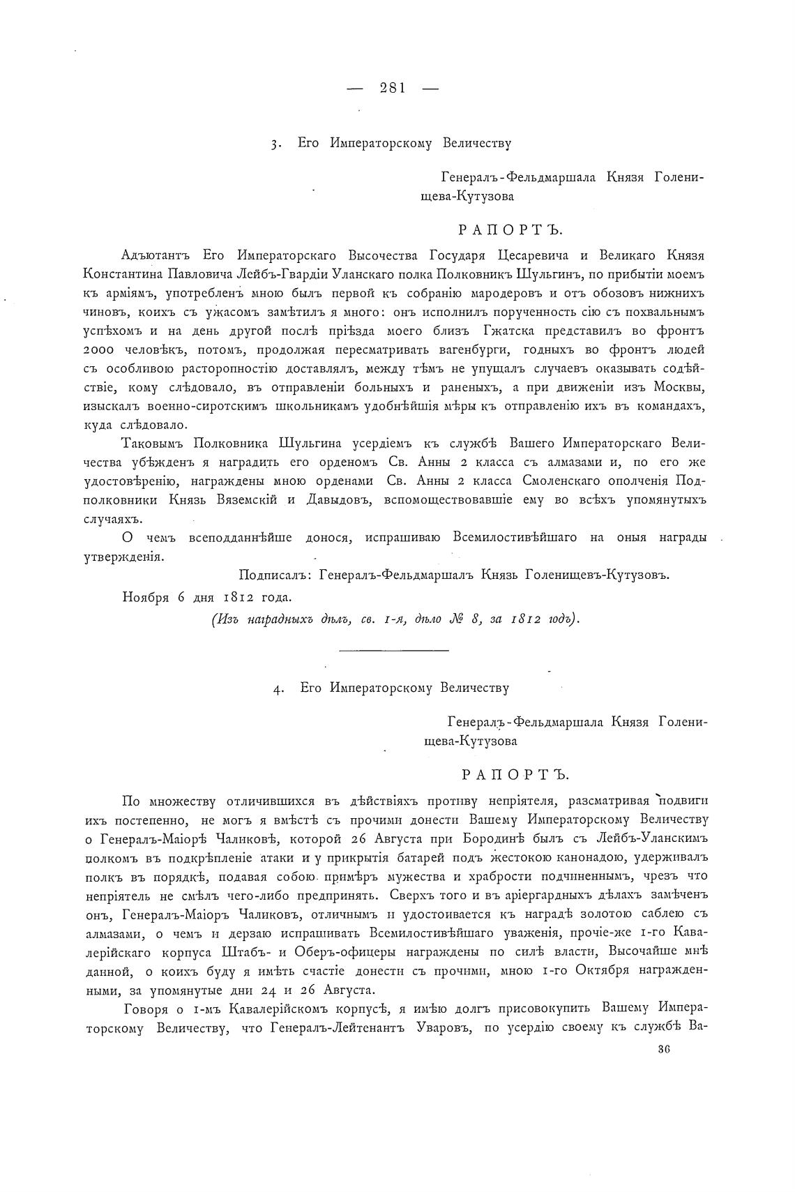 Подписалъ: Генералъ-фельдмаршалъ Князь Голенищевъ-Кутузовъ.