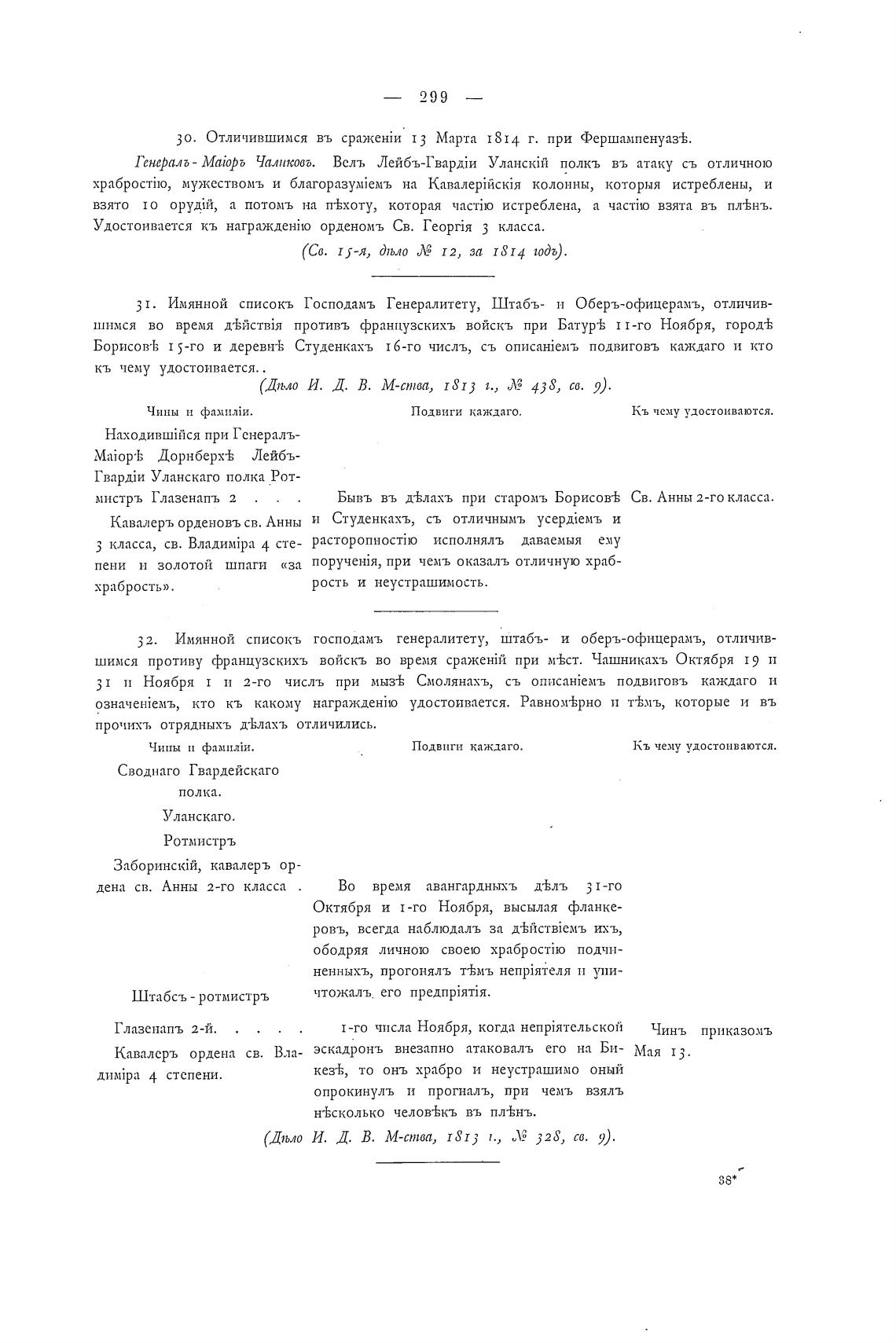 30. Отличившимся въ 1 3 Марта 1814 г. при Фершампенуаз•к.