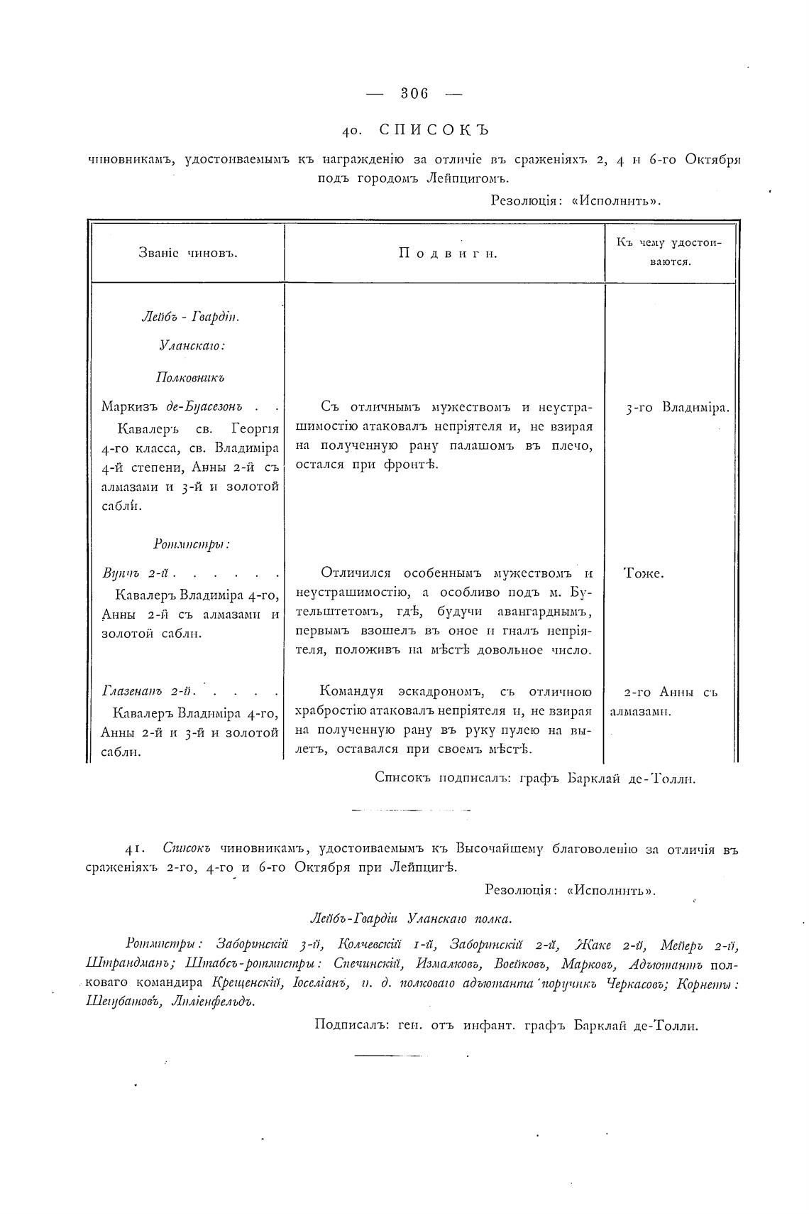 Списокъ подписалъ: графъ Барклай де- “ Голлн.