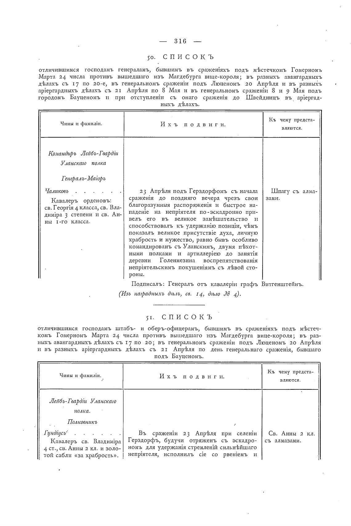 д±лахъ съ 17 по 20-е, въ генеральномъ сражеуЙи подъ Люценомъ 20 Апр±ля н въ разныхъ