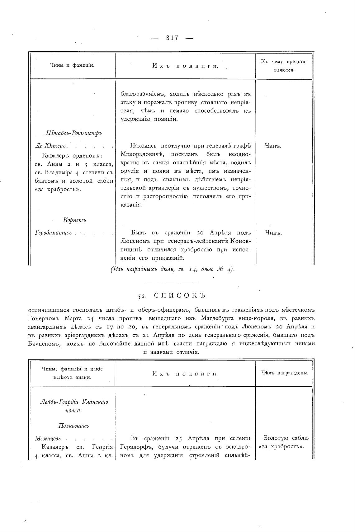 авангардных-ь д±лахъ сл 17 по 20, въ генеральномъ сраже}йн подъ Люценомъ 20 Апр±ля и