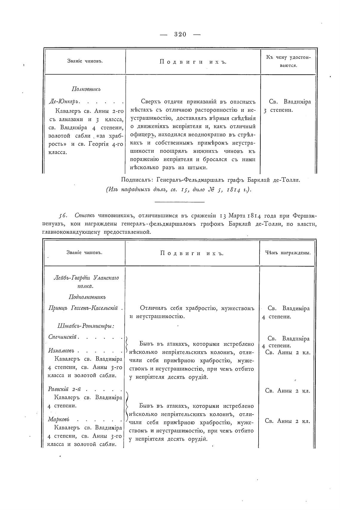 Подписалъ: Генералъ-фельдмаршалъ графъ Барклай де-Толли.