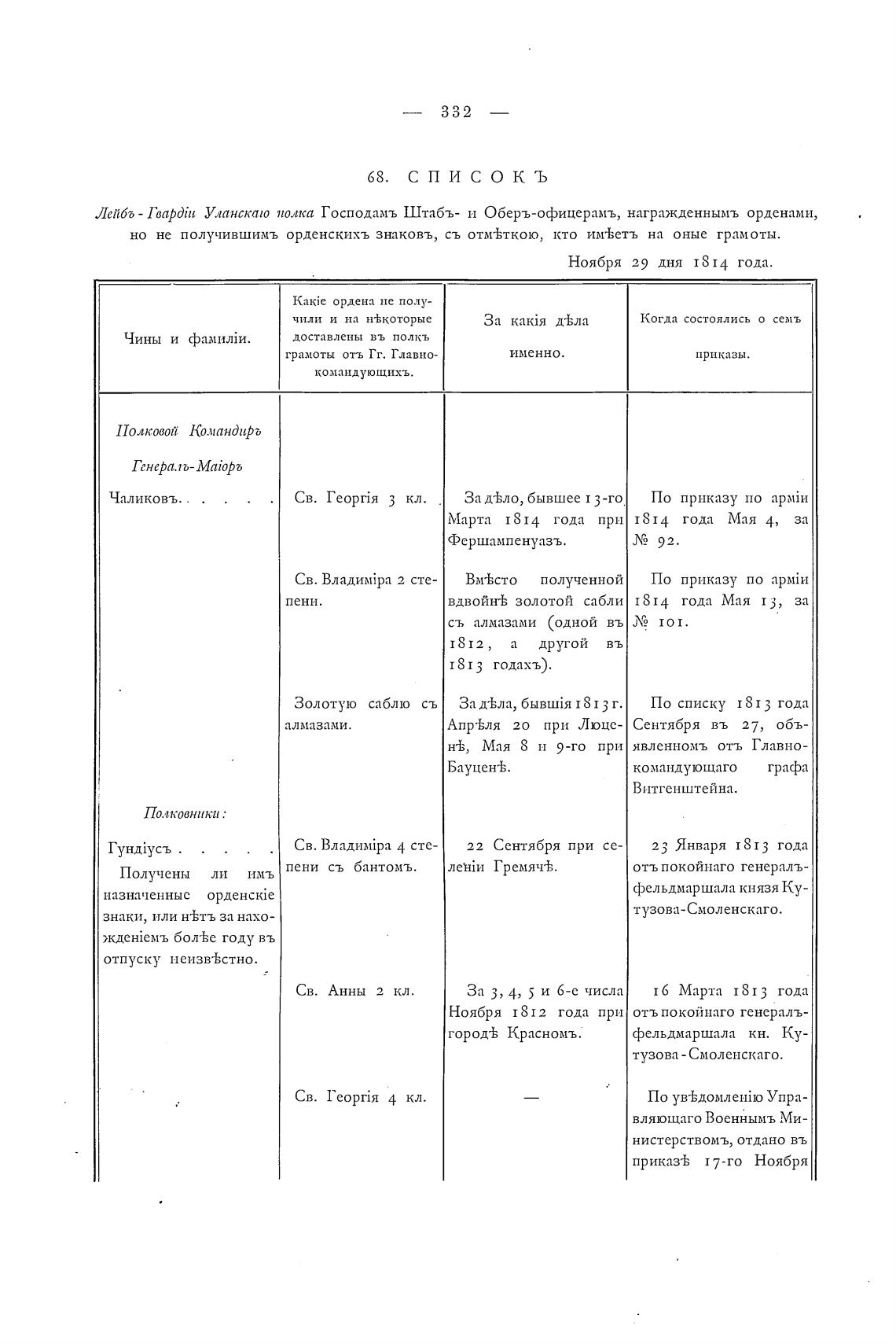 Лепбб - ГаарДй[ Уланскшо полка Господамъ Штабъ- и Оберъ-офицерамъ, награжденнымъ орденами,
