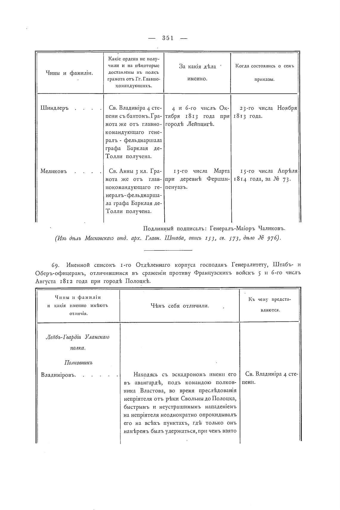 (Изъ Дљлг, Москооскаю отд. арх. Главн. Штаба, опись 153, св. 573, Дњло Л? 976).
