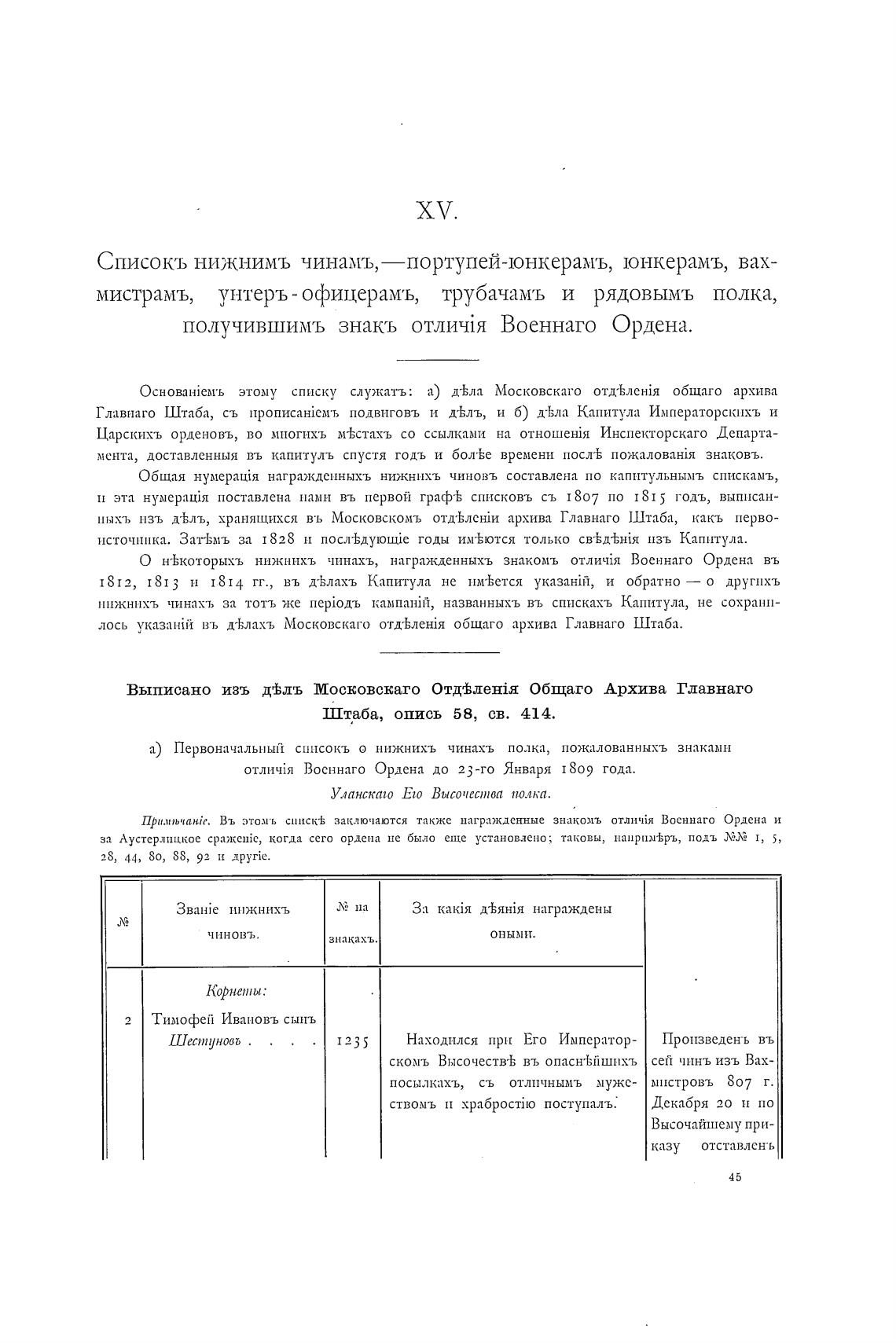 а) Первоначальный списокъ о нижнихъ чинахъ полка, пожалованныхъ знаками