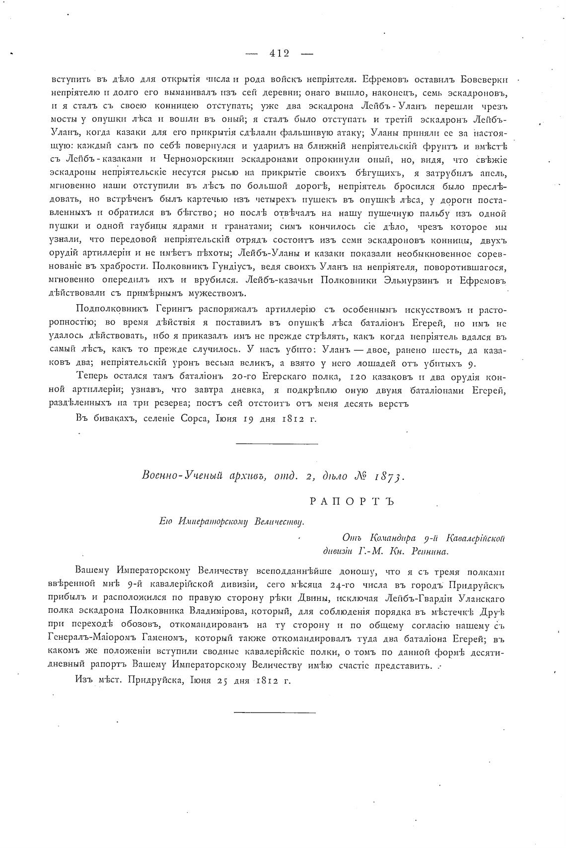 Изъ м-Ьст. Придруйска, Тюня 25 дня '1812 г.