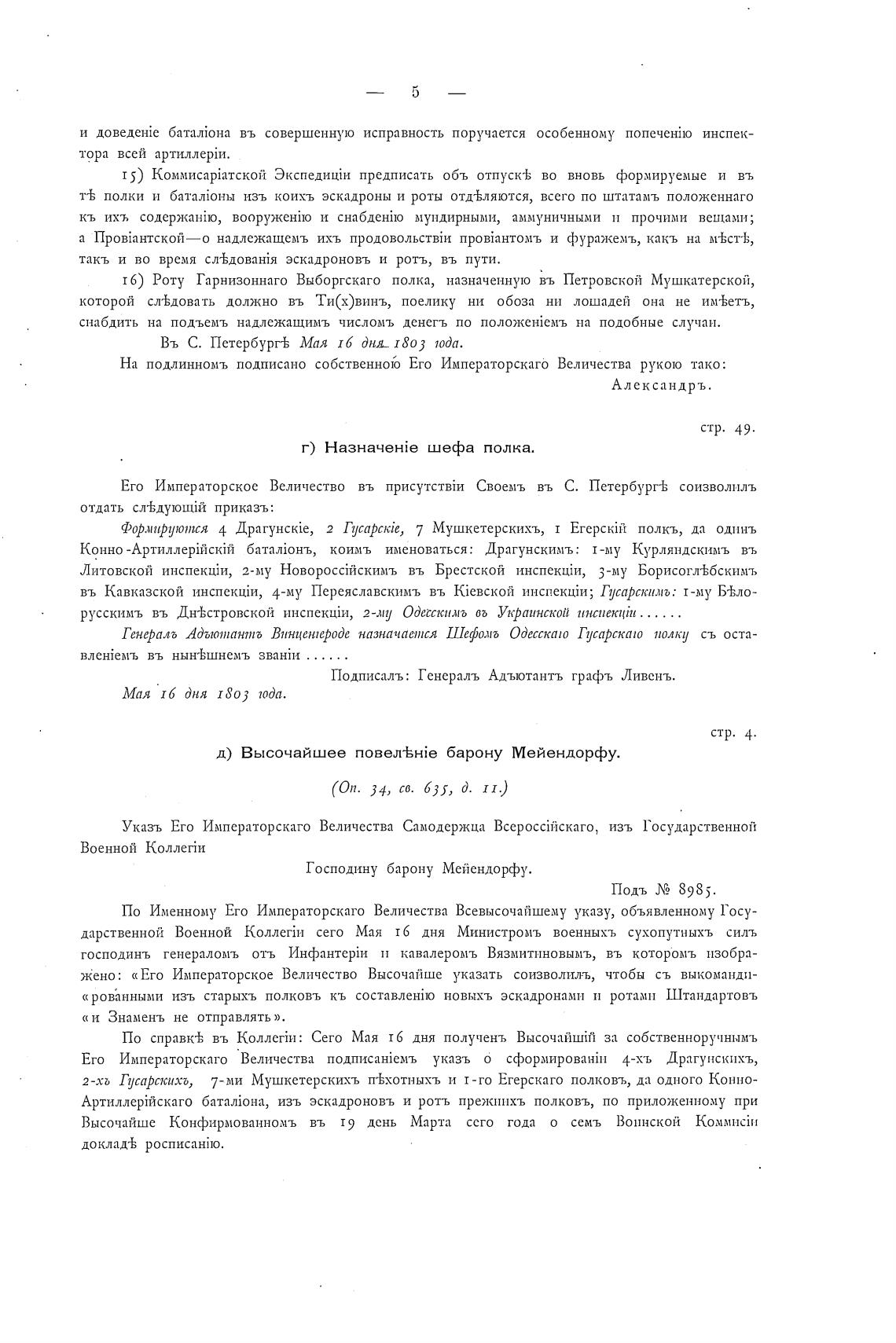 Въ С. ПетербурН; Мая 16 Дню 1803 10Да.