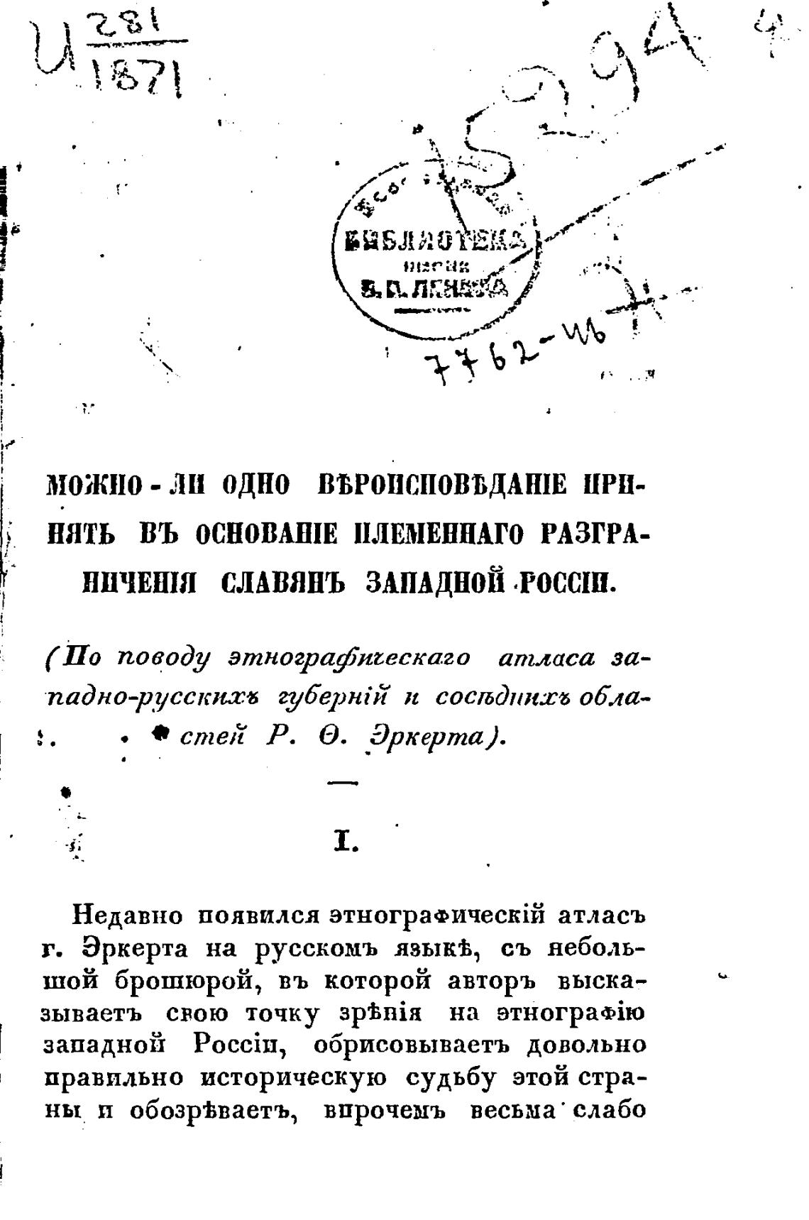 ИИЧЕНШ слАвянъ ЗАПАДНОЙ „РОССИИ.