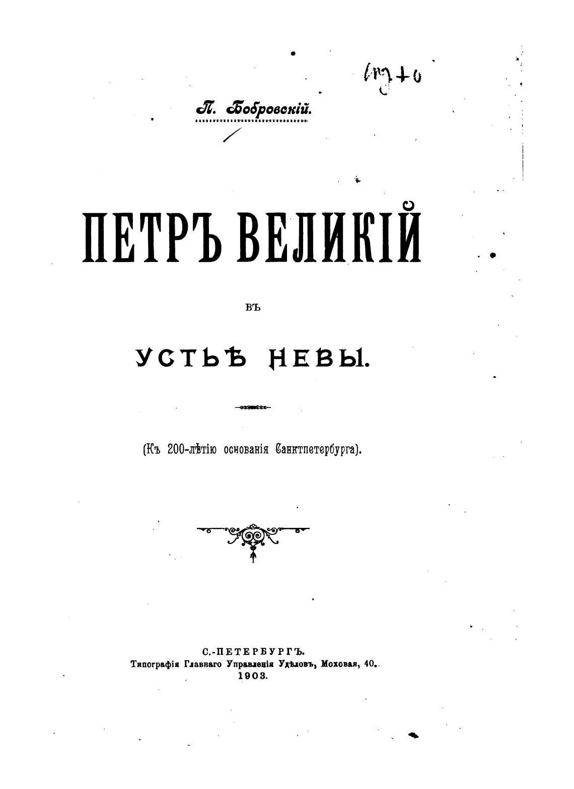 (Кь 200-лню основанЈя Санктпетербурга).