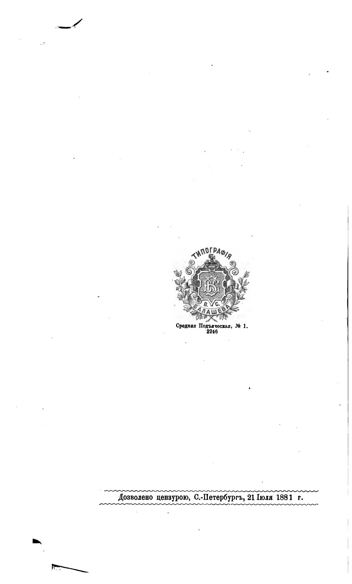 Дозволено цензурою, С.-Петербургъ, 211юля 1881 г.