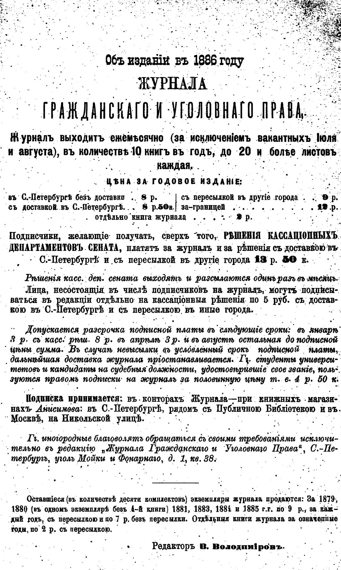тельно въ редакийр „Журнала Гражд«нскаео и Узоловназо Права“, С.-Пе-