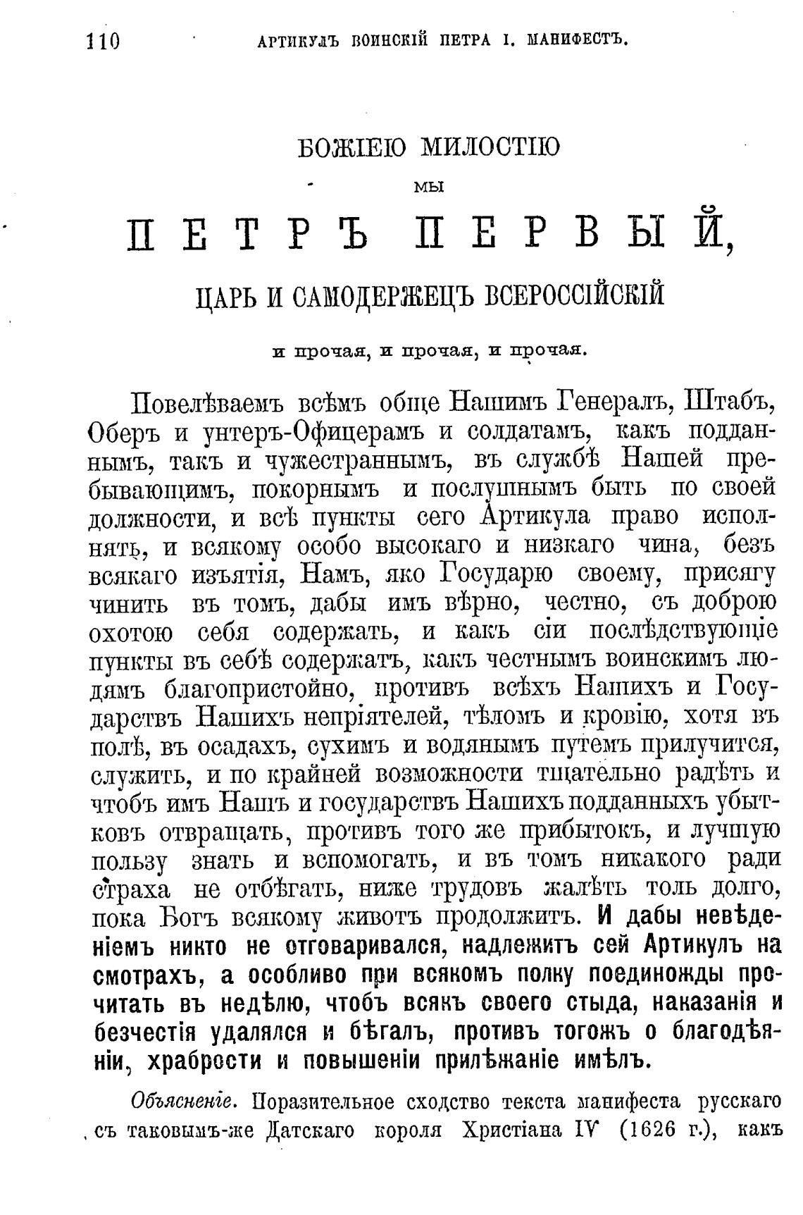 АРТИКУЛЬ воинсТй ПЕТРА 1. МАНИФЕСТЪ.