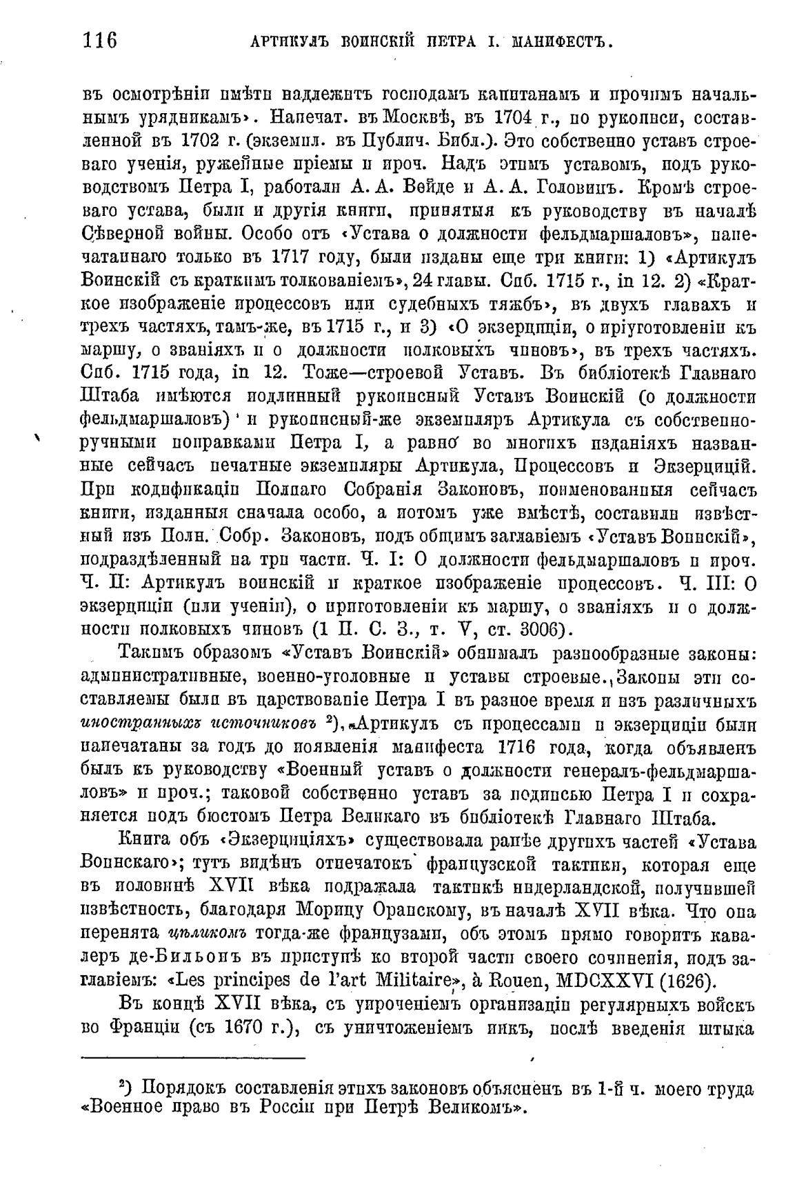 фельдмаршаловъ) ' н рукописный-же экземпляръ Артикула съ собственно-