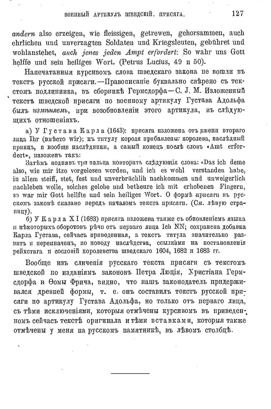 текстъ шведской присяги по военному артикулу Густава Адольфа