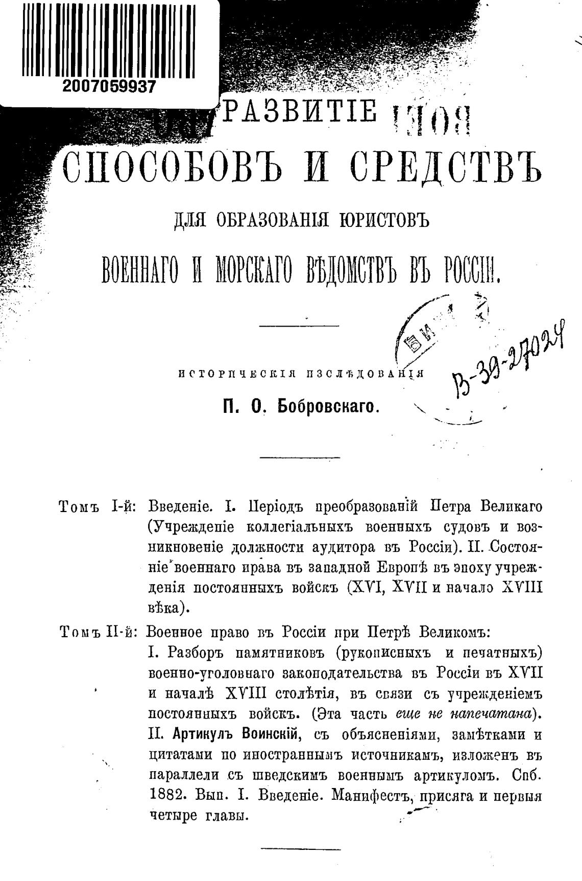 Томь 11-й: Военное право въ при Пет1А Великомъ: