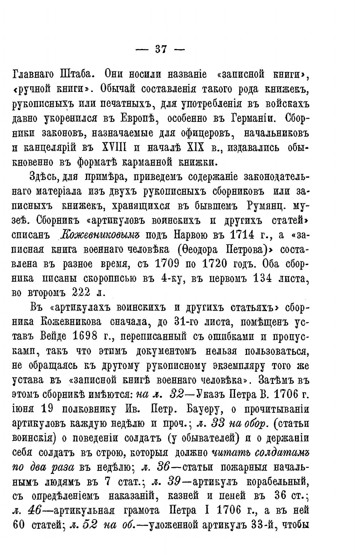 Въ «артикулахъ воинскихъ и другихъ статьяхъ» сбор-