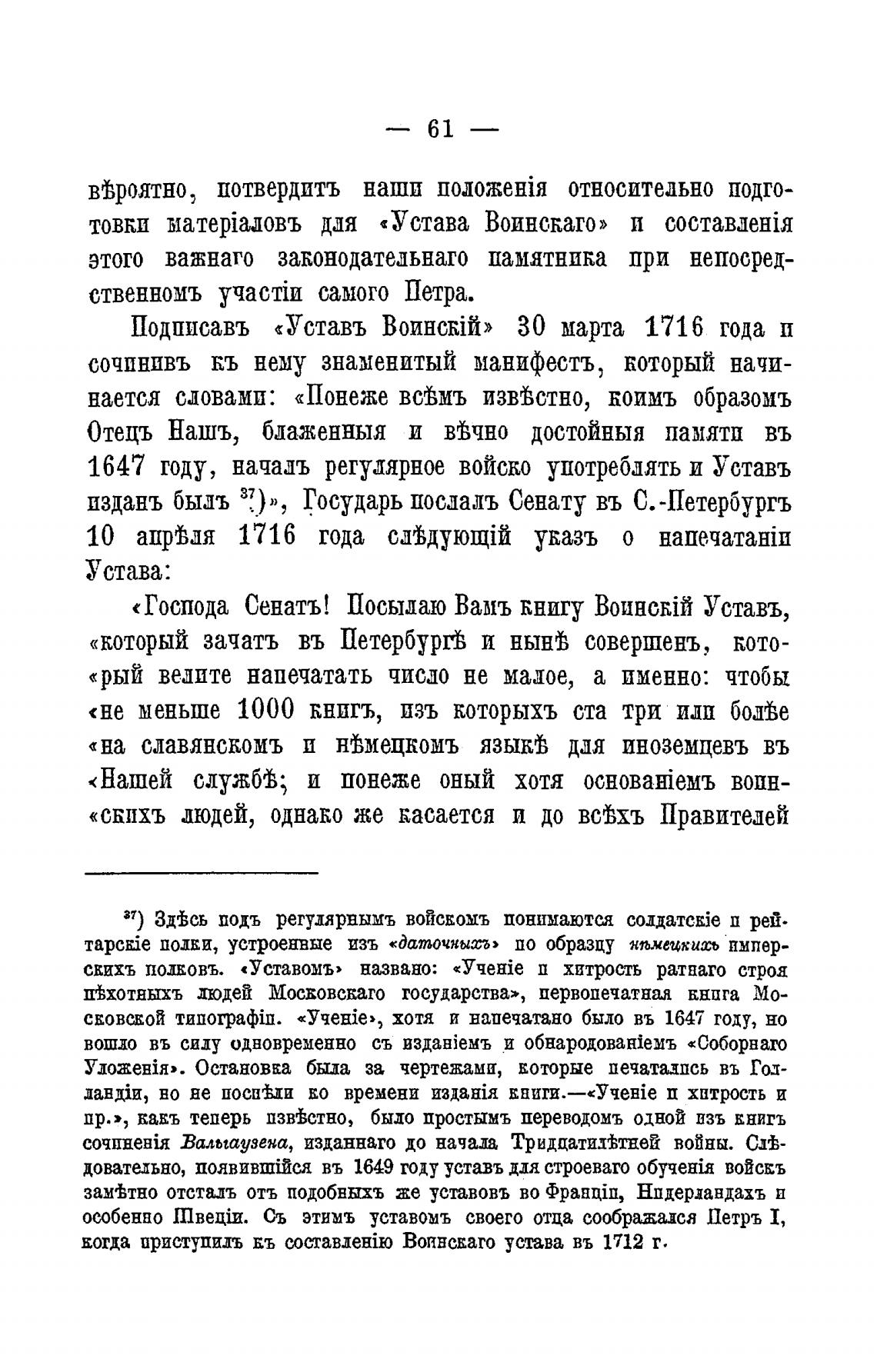 1647 году, начадъ регулярное войско употреблять и Уставь