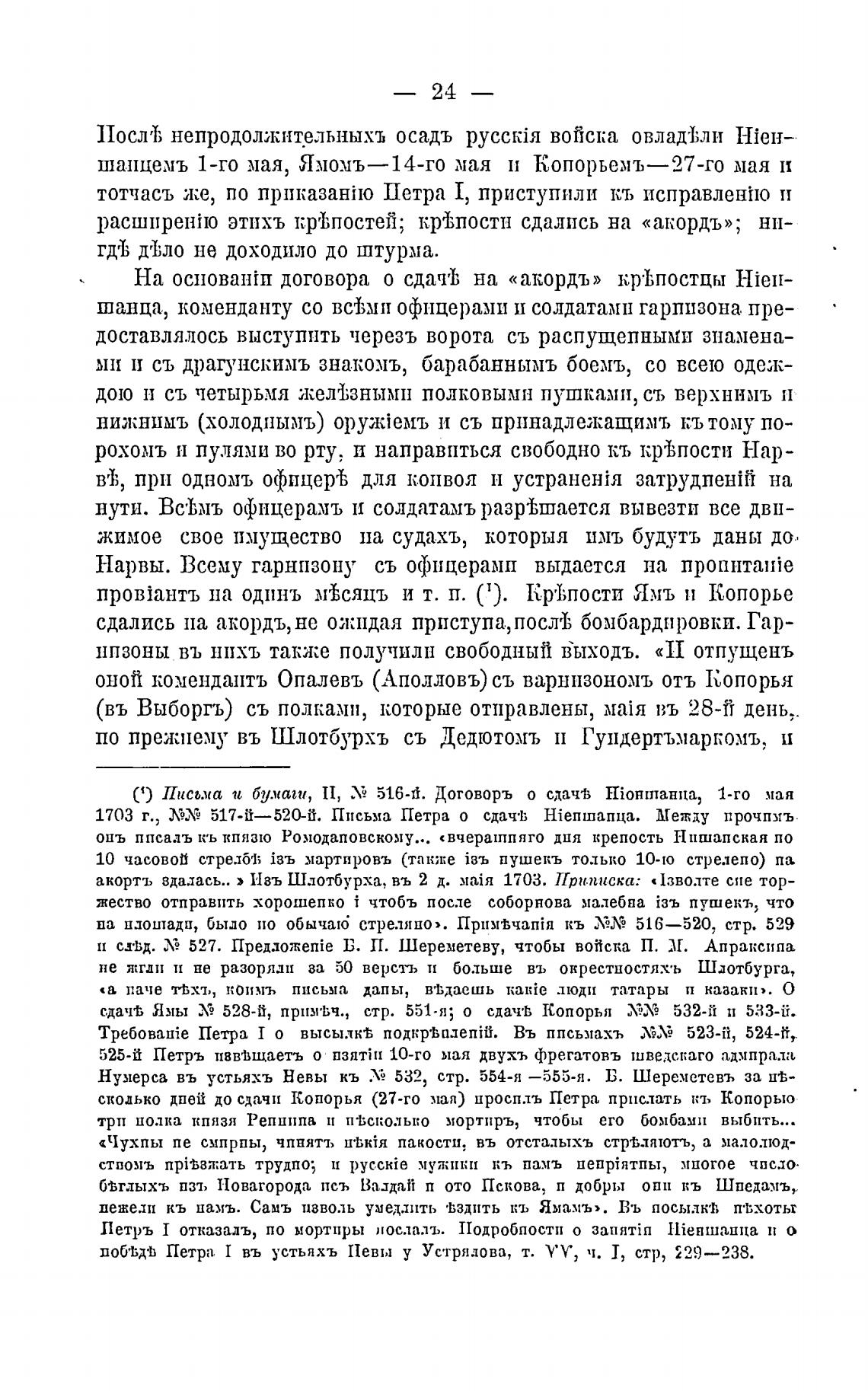 сдач% Ямы 528-й, прим•Ьч., стр. 551-я; о сдач•В Копорья ХЕХ 532-й п 533-й.