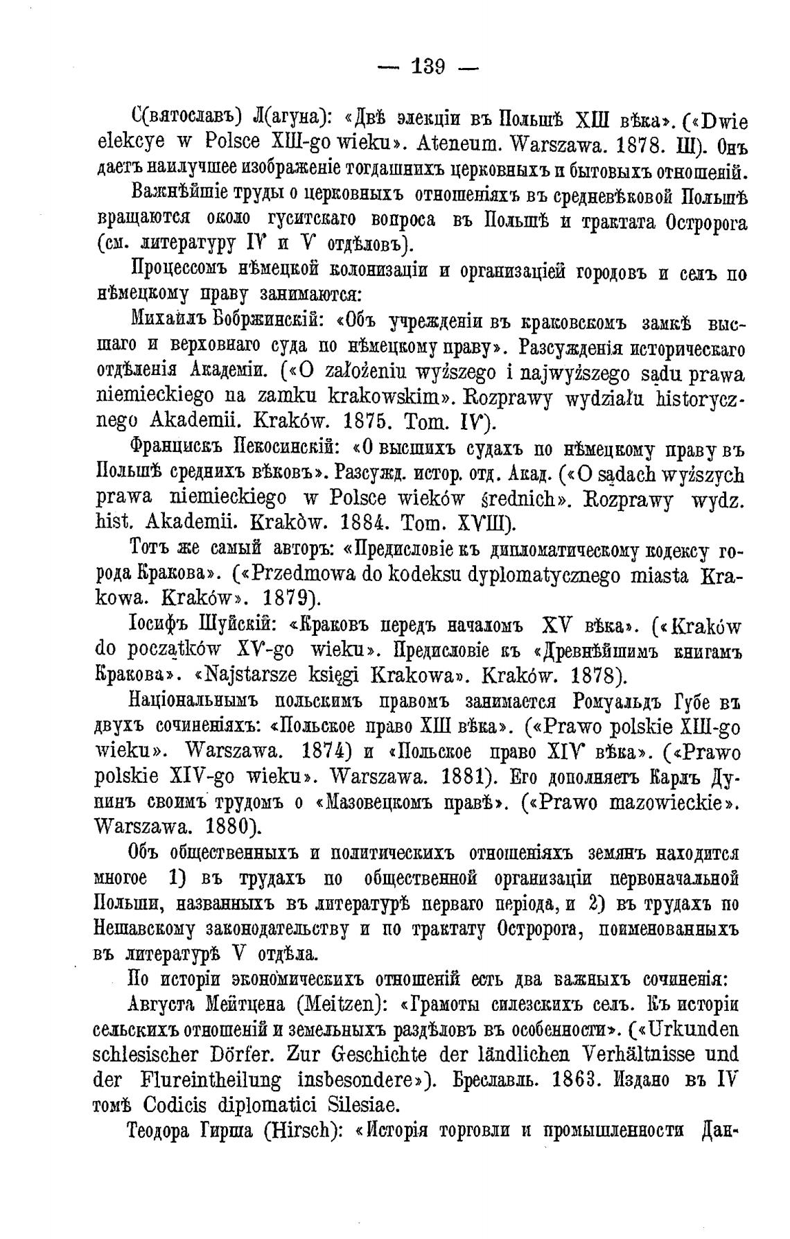 Польш'В среднихъ ввковъ». Разсужд. истор. отд. Акад. («О sadach wyiszych