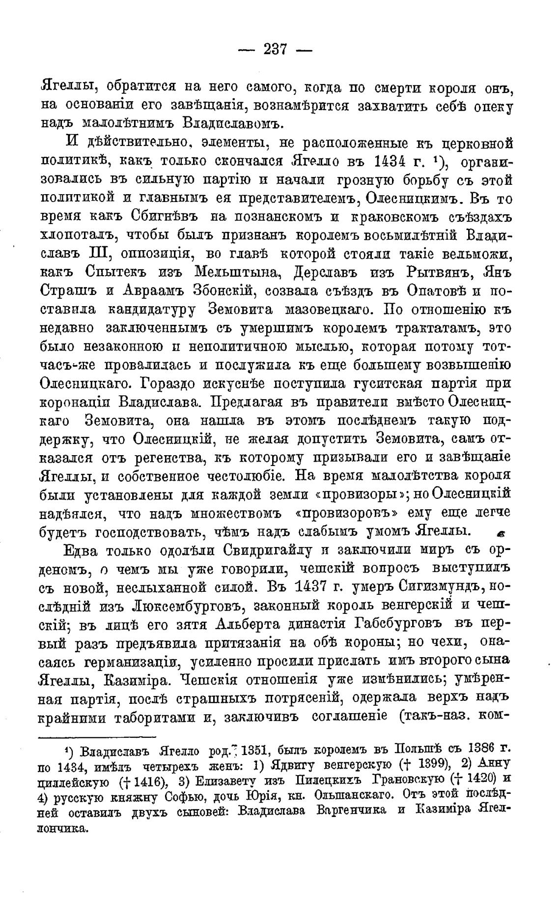 по 1434, им±лъ четырехъ женъ: 1) Ядвигу венгерскую (+ 1399), 2) Анну