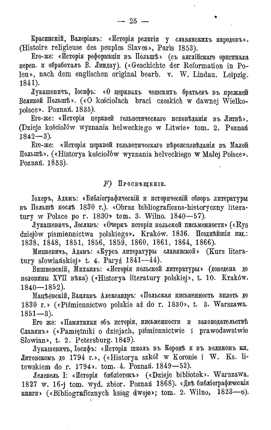 въ Польшв посд% 1830 т.). «0braz bibliograficzno-historyczny litera-