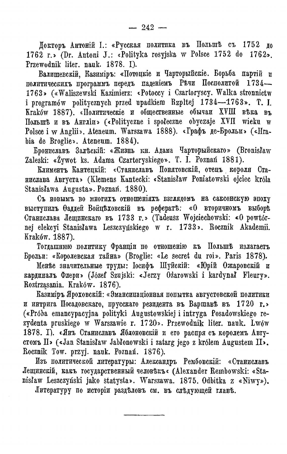 1762 г.» (Dr. Antoni Ј.: «Polityka rosyjska Polsce 1752 do 1762».