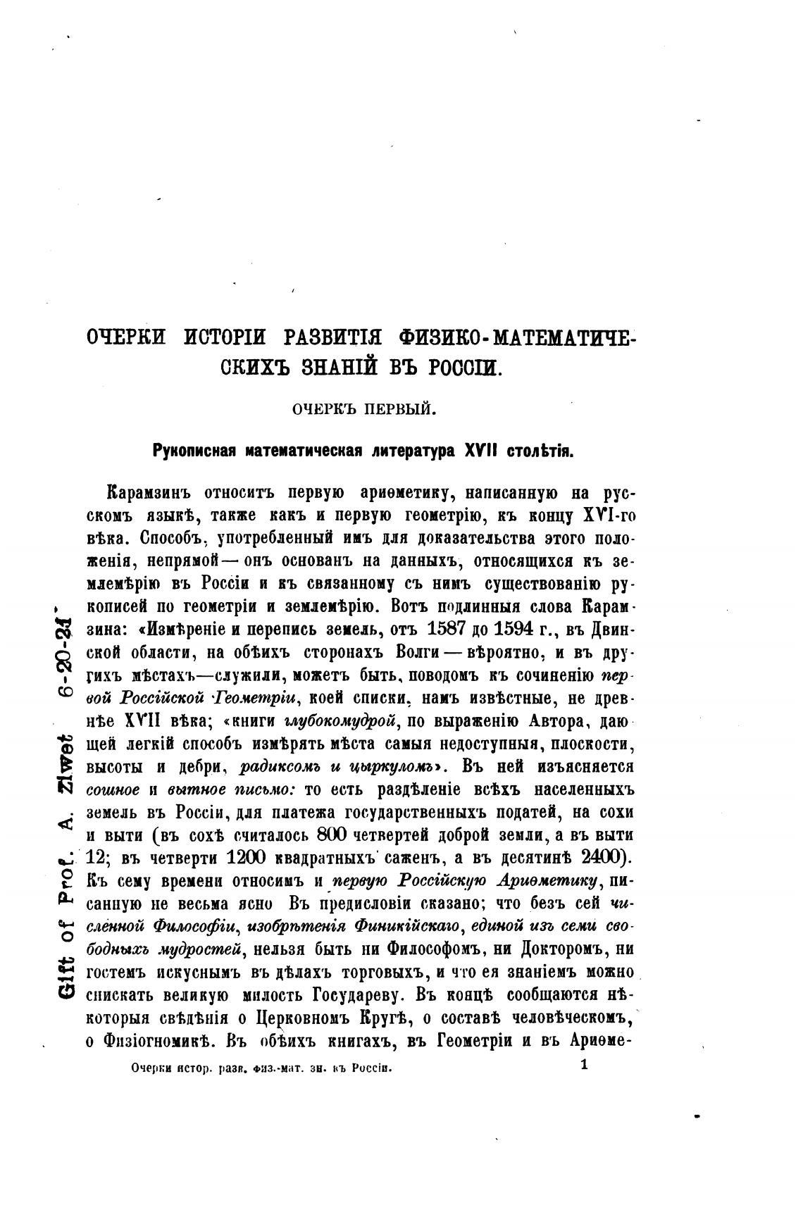 Очерки ястор. разя. ФИЗ.-мат. зн. кь PucciB.