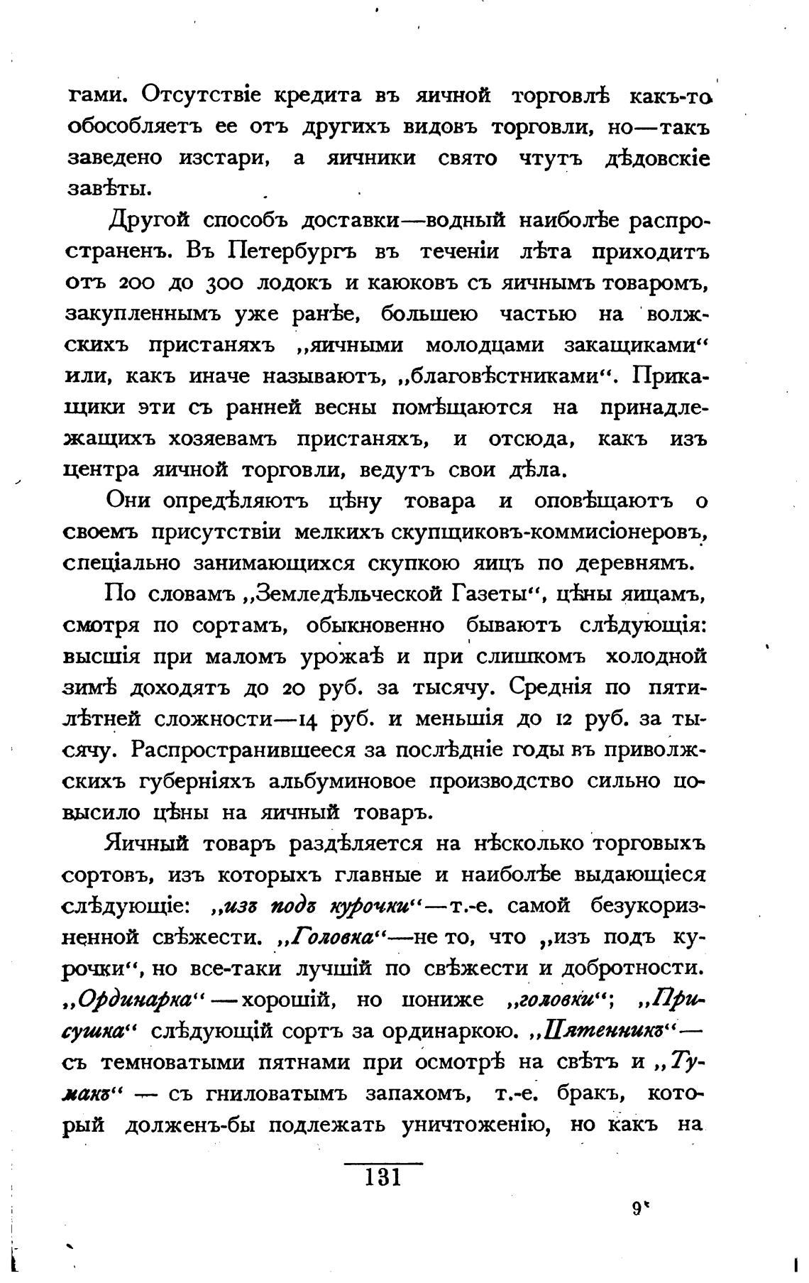 Яичный товаръ разд±ляется на нЊсколько торговыхъ