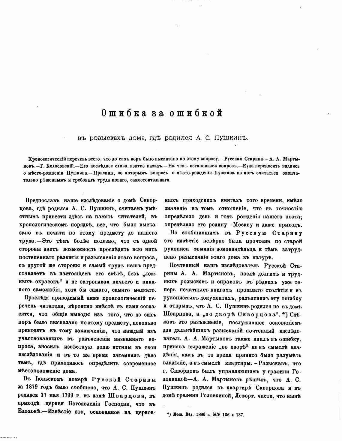 въ розыскахъ домз, родился А. С. Пушкинъ.