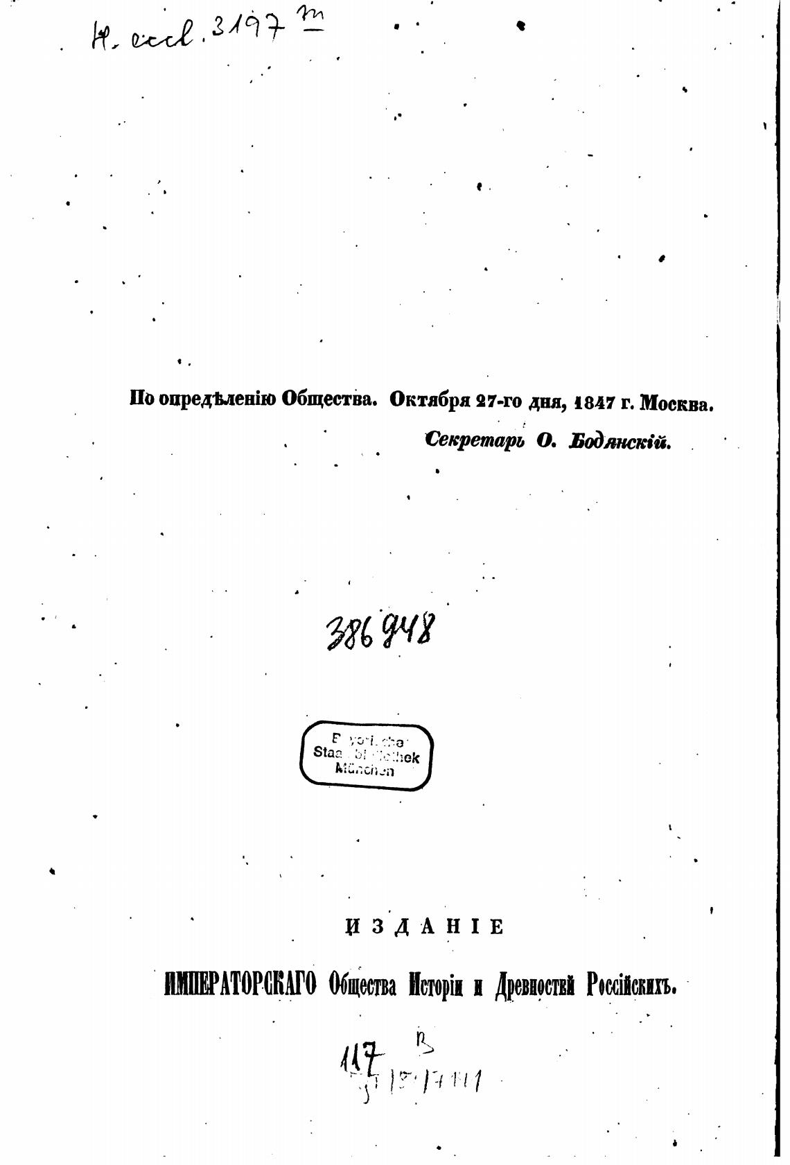 по oupeo.aeaio Общества. Октабря 97-го дня, 1847 г. Москва.