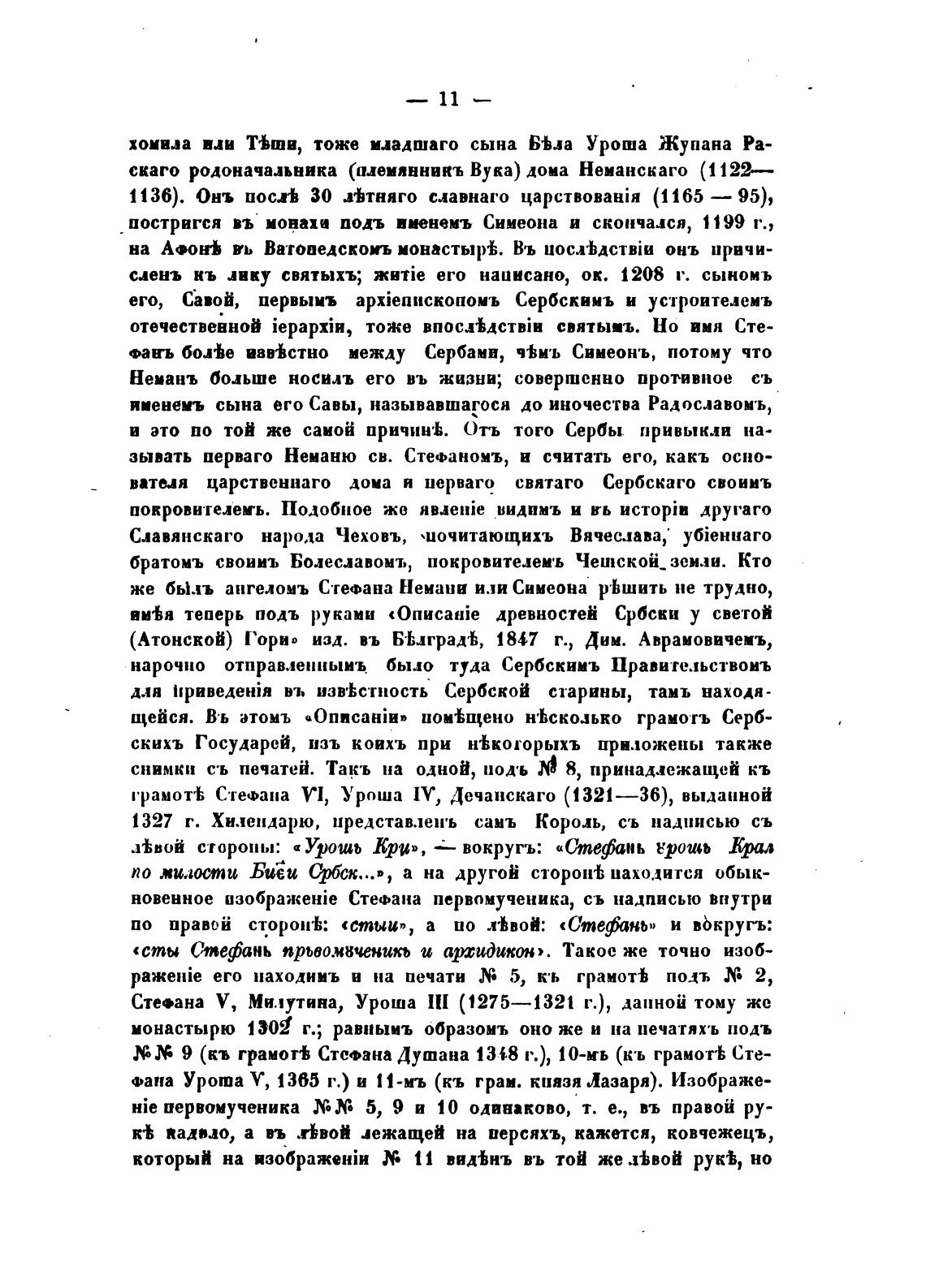 Фана Урота У, 1365 г.) и 11-мъ (кь грам. князя Лазаря). Изображе-