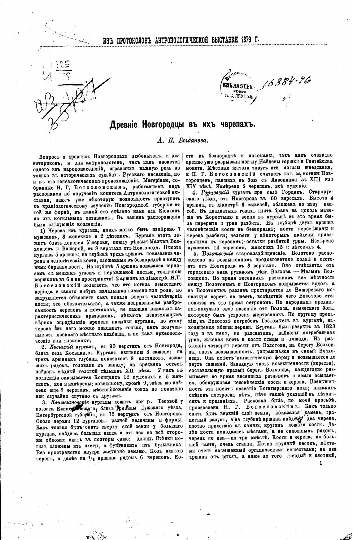 ИЗЪ протоколвъ АНТРОПОЛОГИЧЕСКОЙ 1879 Г.