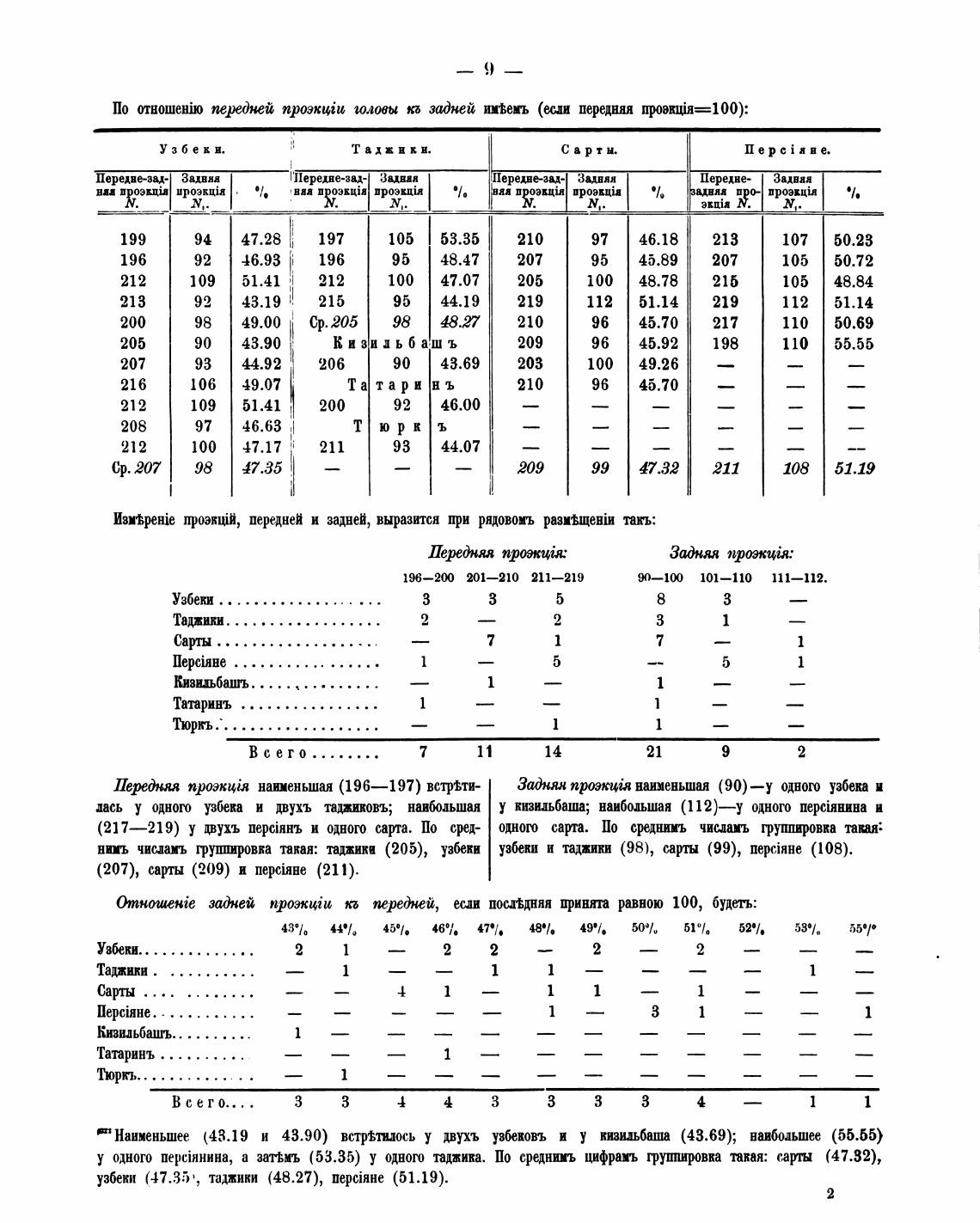нить чисдамъ групщювва такая: таджики (205), узбеки узбеки и таджики (98), сарты (99), (108).