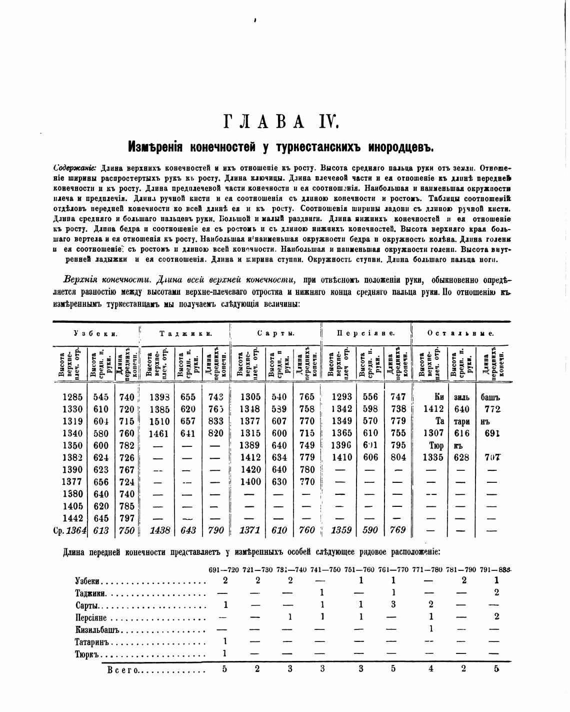 Даива верхнихъ конечностей и ихъ кь росту. Высота средняго пальца руки отъ зе»зп. Отвоюе-