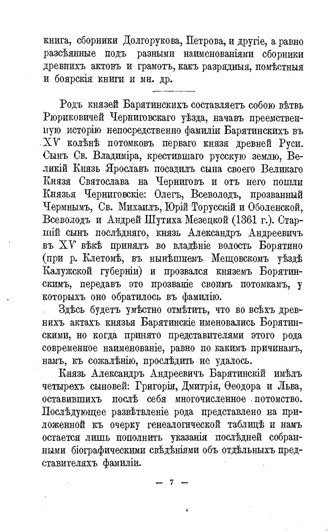 Родь князей Барятинскихъ составляетъ собою вВтвь