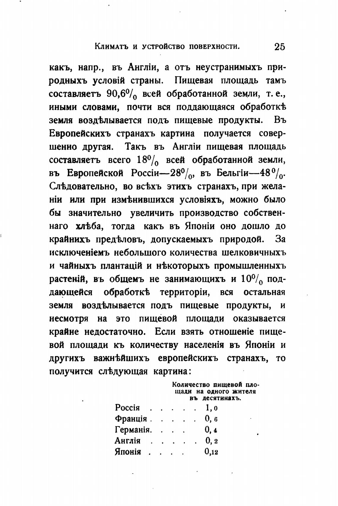 родныхъ страны. Пищевая площадь тамъ