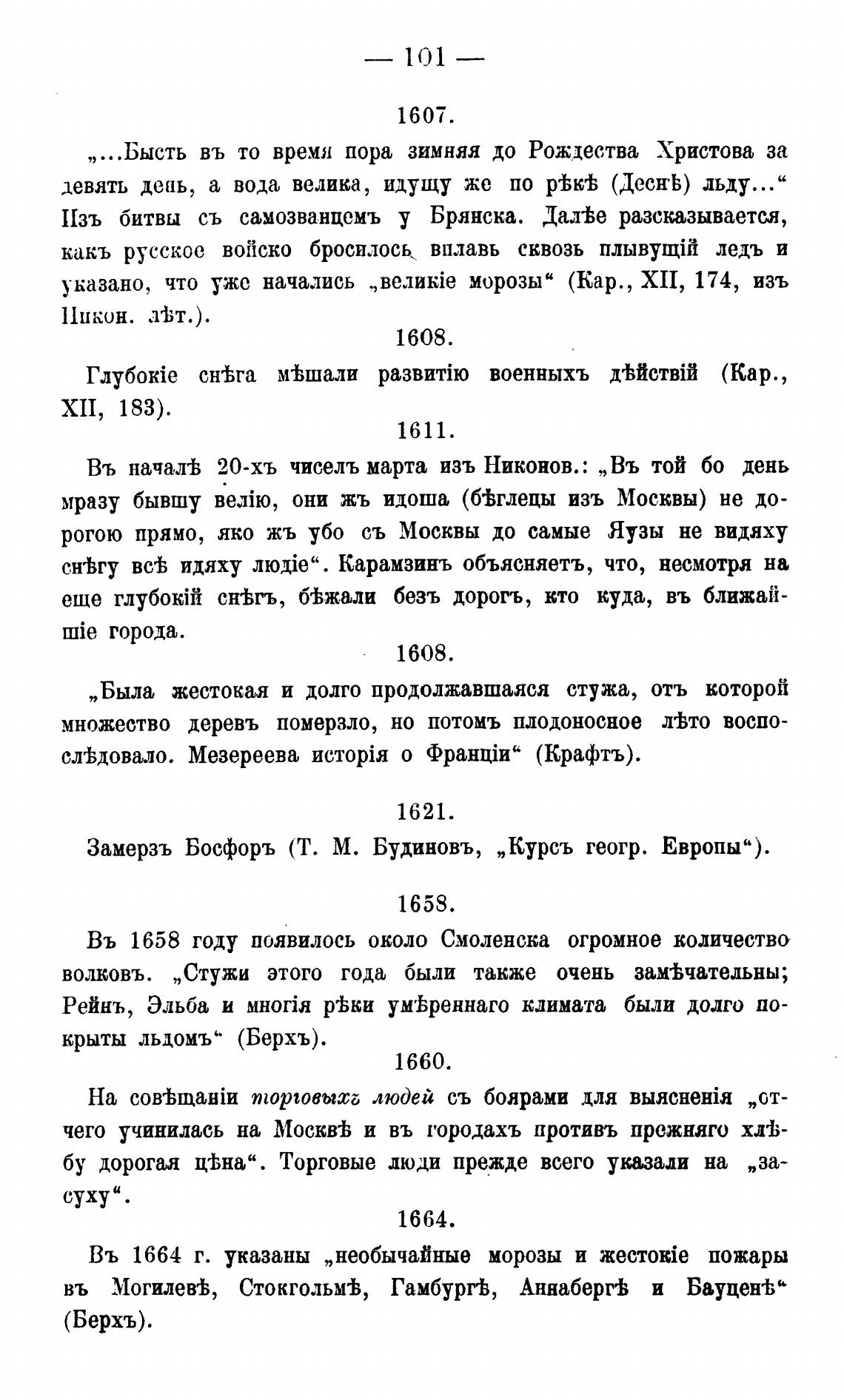 Въ 1664 г. указаны „необычайные морозы и пожары